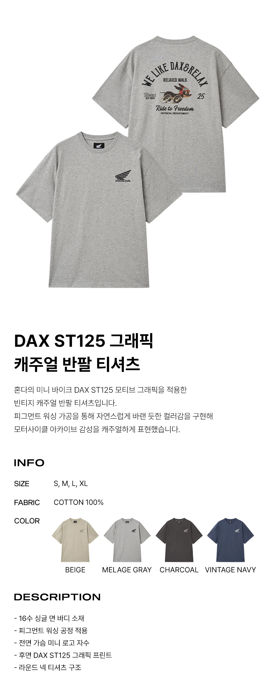 혼다 DAX 125 반팔 티셔츠 그레이