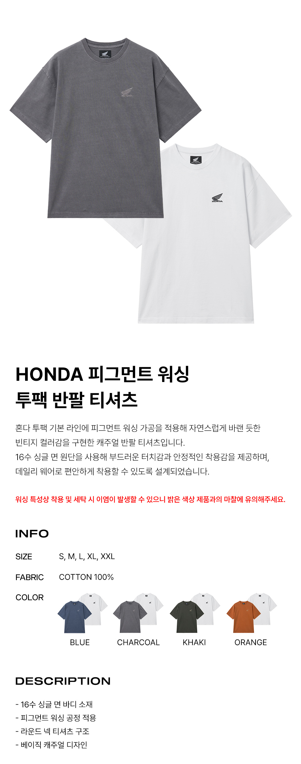 혼다 [2Pack] 오리지널 윙 로고 피그먼트 반팔 티셔츠 차콜 & 화이트