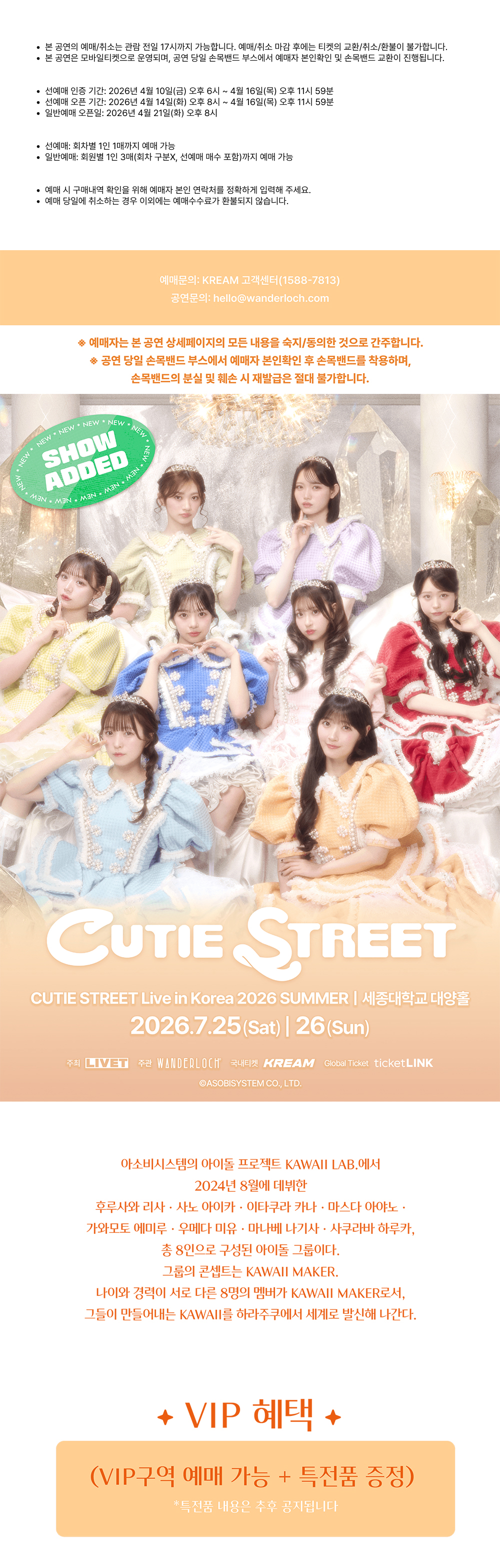 본 공연의 예매/취소는 관람 전일 17시까지 가능합니다. 예매/취소 마감 후에는 티켓의 교환/취소/환불이 불가합니다. 본 공연은 모바일티켓으로 운영되며, 공연 당일 손목밴드 부스에서 예매자 본인확인 및 손목밴드 교환이 진행됩니다. 선예매 인증 기간: 2026년 4월 10일(금) 오후 6시 ~ 4월 16일(목) 오후 11시 59분 선예매 오픈 기간: 2026년 4월 14일(화) 오후 8시 ~ 4월 16일(목) 오후 11시 59분 일반예매 오픈일: 2026년 4월 21일(화) 오후 8시 선예매: 회차별 1인 1매까지 예매 가능 일반예매: 회원별 1인 3매(회차 구분X, 선예매 매수 포함)까지 예매 가능 예매 시 구매내역 확인을 위해 예매자 본인 연락처를 정확하게 입력해 주세요. 예매 당일에 취소하는 경우 이외에는 예매수수료가 환불되지 않습니다.
