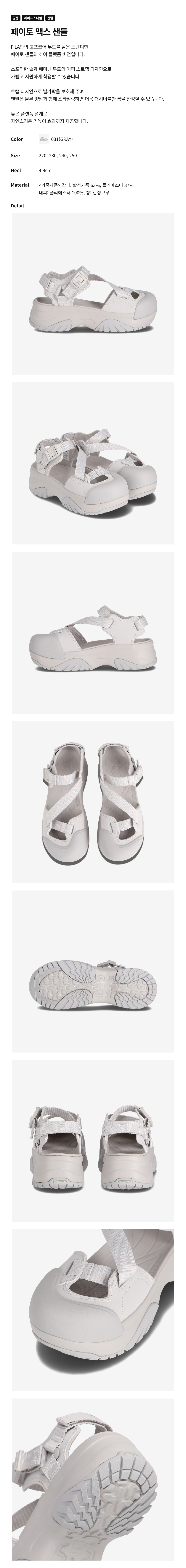 FILA만의 고프코어 무드를 담은 트렌디한 페이토 샌들의 하이 플랫폼 버전입니다.스포티한 솔과 페미닌 무드의 어퍼 스트랩 디자인으로 가볍고 시원하게 착용할 수 있으며,토캡 디자인으로 발가락을 보호해 줍니다. 맨발은 물론 양말과 함께 스타일링하면 더욱 패셔너블한 룩을 완성할 수 있습니다.높은 플랫폼 설계로 자연스러운 키높이 효과까지 제공합니다.