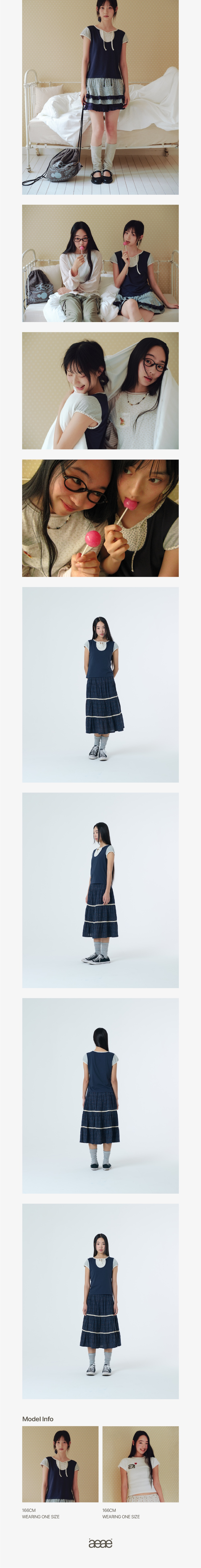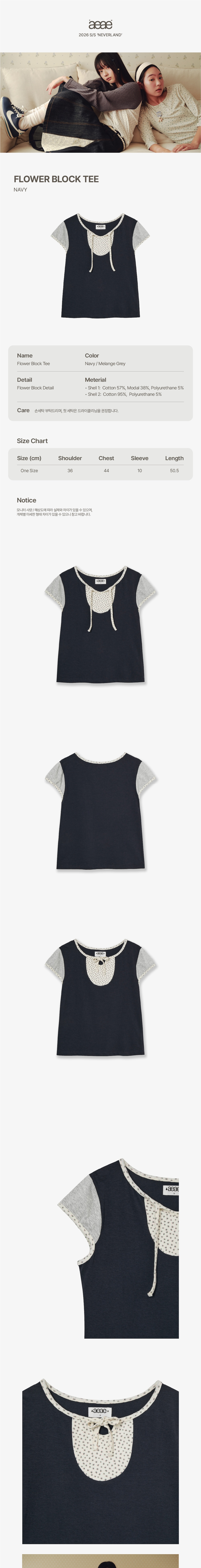 에이이에이이 플라워 블록 티 네이비