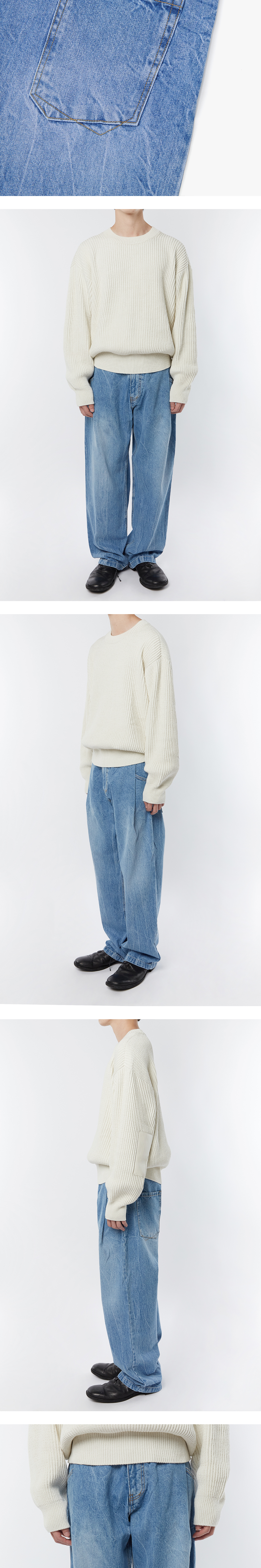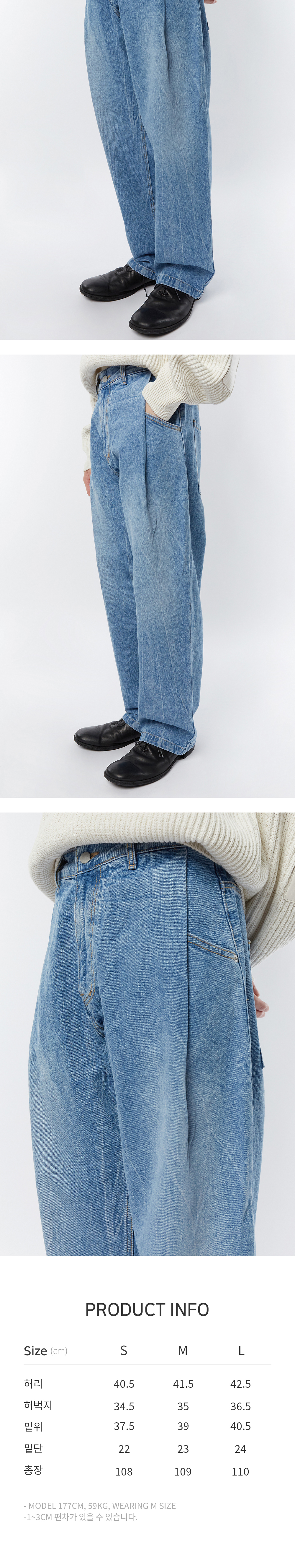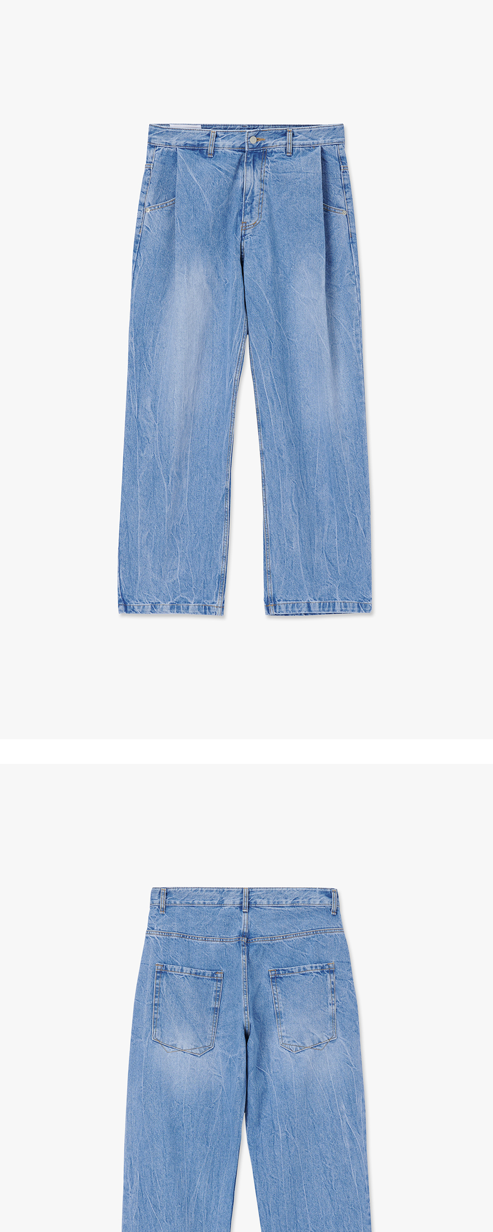 타이핑 미스테이크 크랙 워시트 턱 와이드 데님 팬츠 라이트 인디고 - 22FW