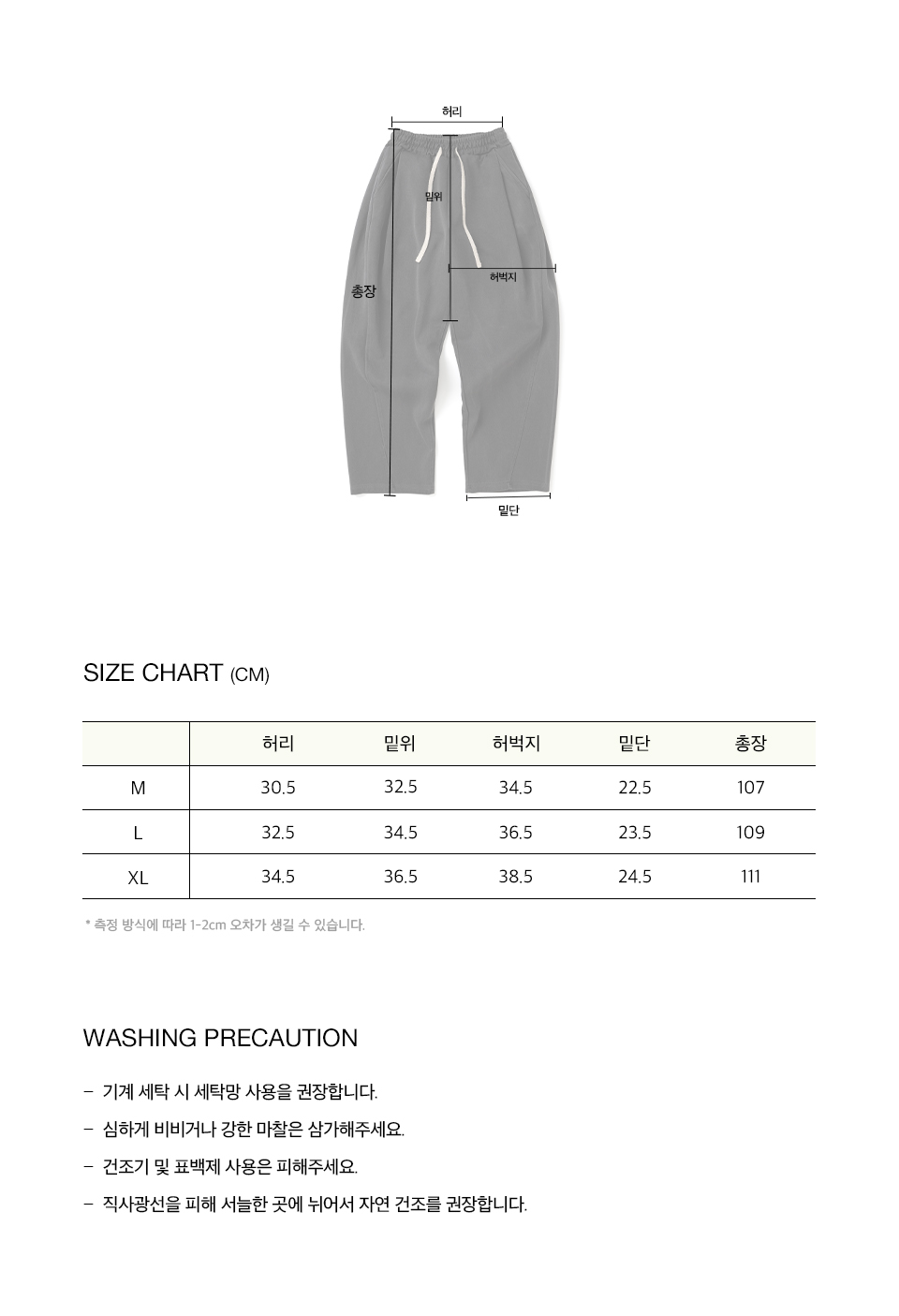 ※ 피그먼트 제품의 경우 세탁 시 이염이 생길 수 있어 세탁 시 단독 세탁 부탁드리겠습니다.