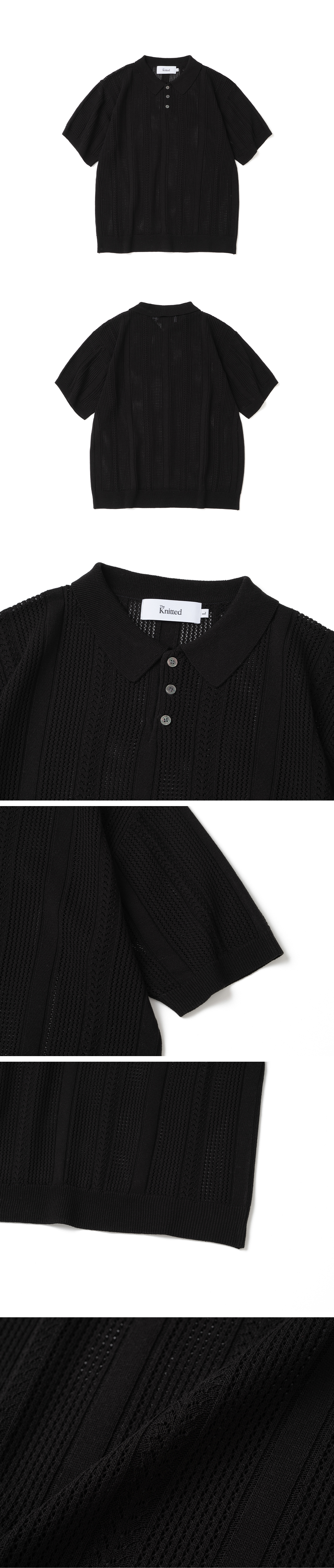 니티드 린넨 스카시 카라 반팔 니트 블랙