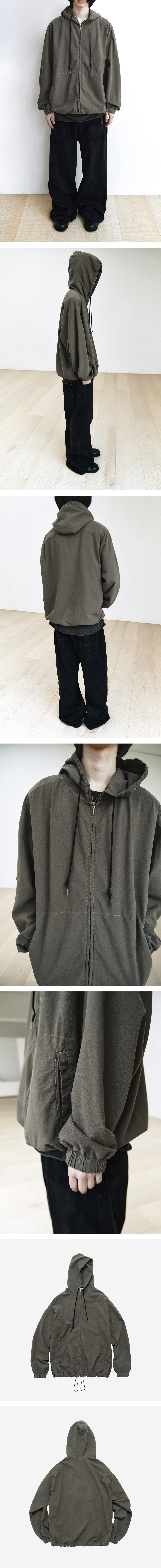 zip hoodie parka 심플한 구성의 집 파카. 얕은 크리즈드 질감의 코튼 베이스로 진득한 색감으로 다잉한 제품으로, 부드럽게 뭉개지는 실루엣이 더해져 좋은 바이브를 만들어줍니다. 전체적으로 넓은 품, 긴 기장 구성으로 밑단을 조여 가볍게 말아입거나, 혹은 조금 가볍게 조인 채로 길게 떨어지는 실루엣으로 활용 등, 아웃핏의 전체적인 비례를 다양하게 연출할 수 있으며, 적당히 깊은 후드 사이즈, 아우터 볼륨에 전혀 영향을 주지 않는 부드러운 소재감이므로 계절 영향 없이 단품 및 이너로써 좋은 활용이 가능합니다. *모델: 178cm / 마른 체형, 3사이즈 착용