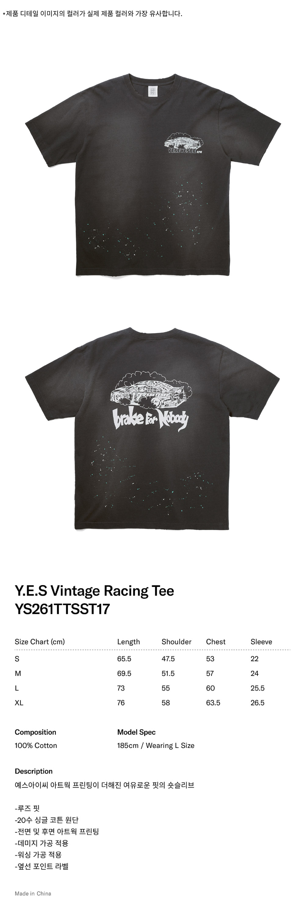 [더블적립] YESEYESEE Y.E.S Vintage Racing Tee Charcoal