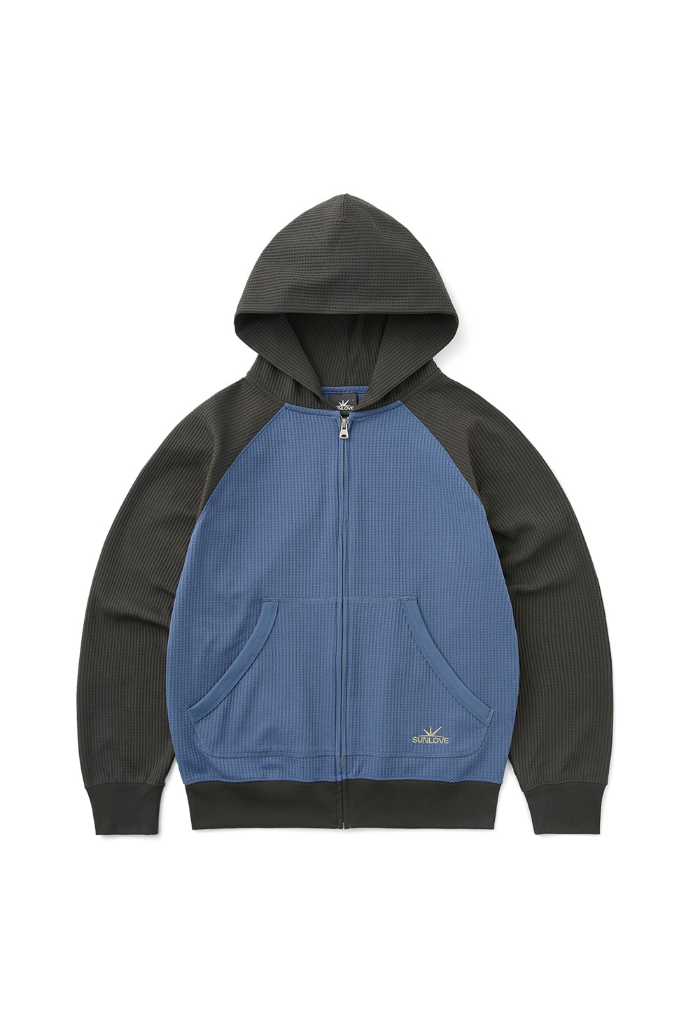 [트리플적립] SUNLOVE Aero Waffle Zip Up Hoodie Blue