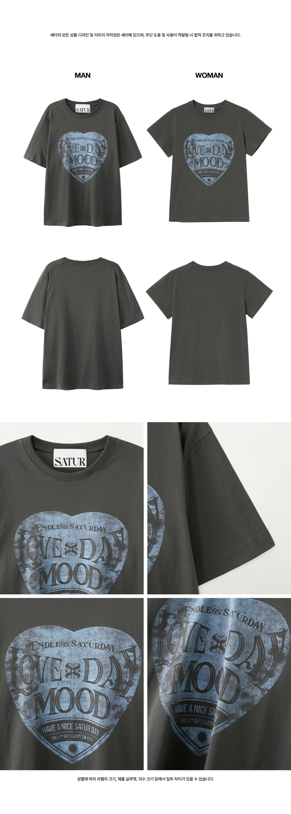 세터 세터데이 레트로 무드 그래픽 반팔 티셔츠 차콜 블루