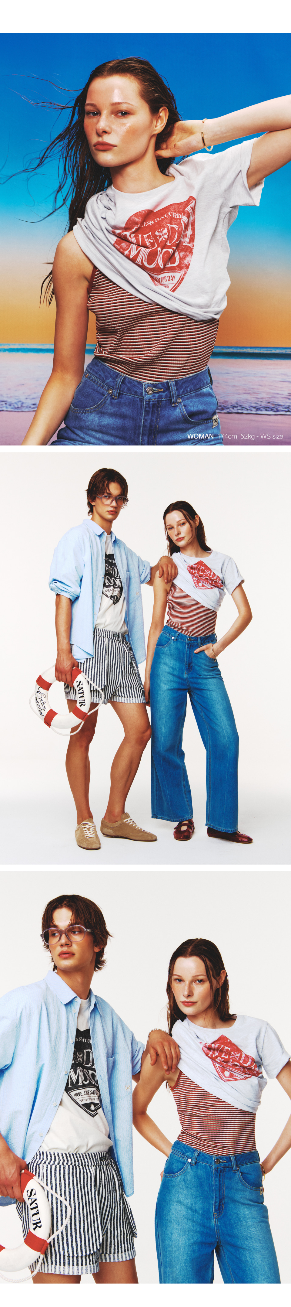 세터 우먼 세터데이 레트로 무드 그래픽 반팔 티셔츠 멜란지 화이트