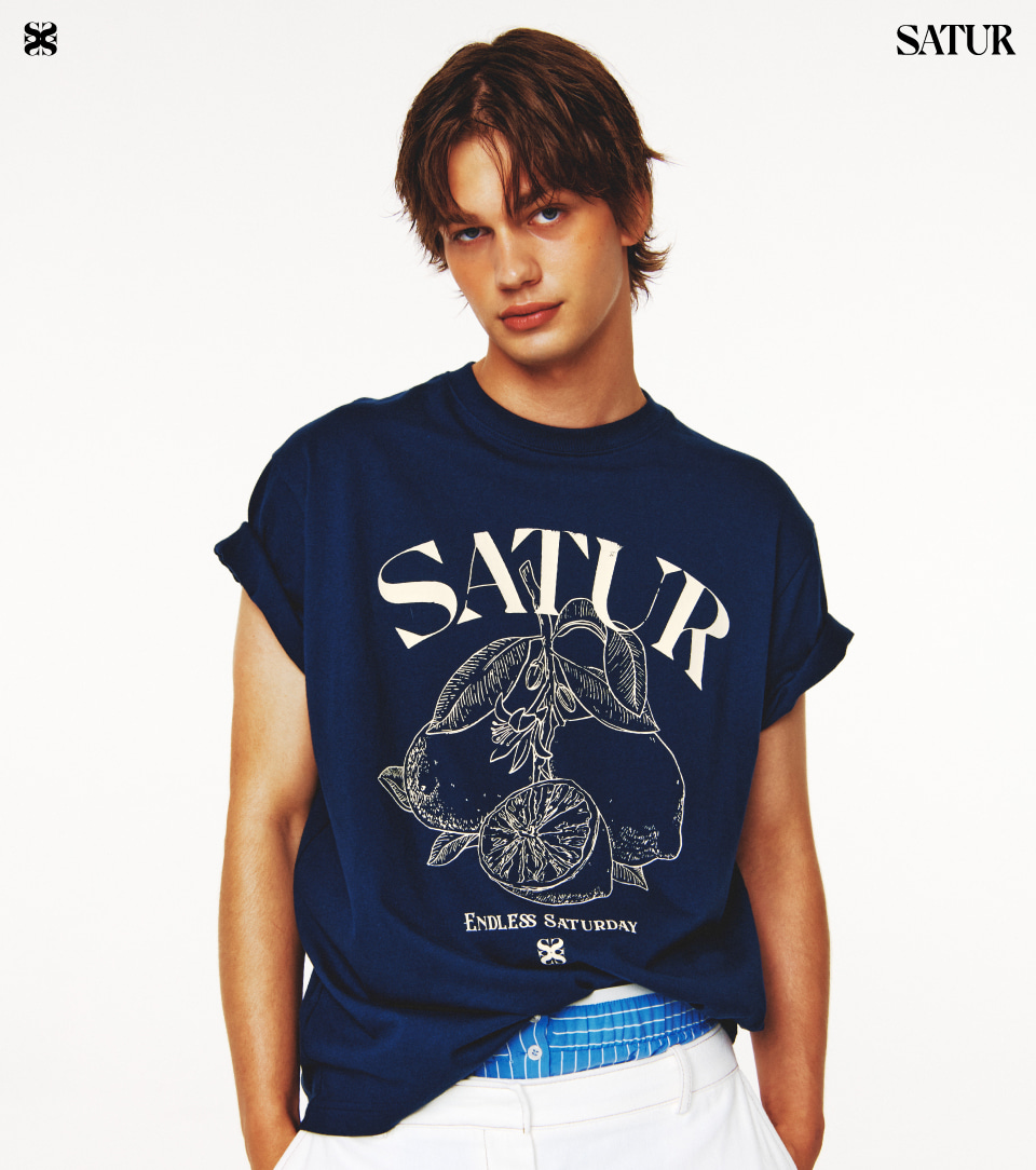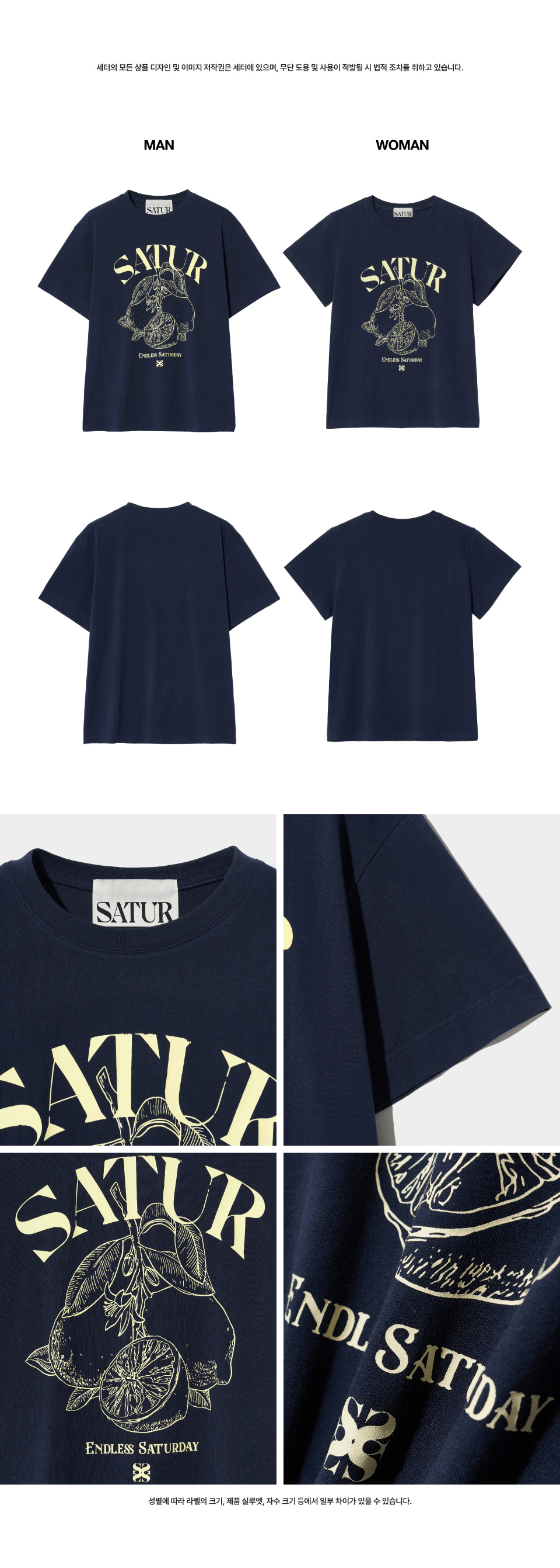SATUR Capri Citron Drawing Summer Graphic T-Shirt Sunset Navy