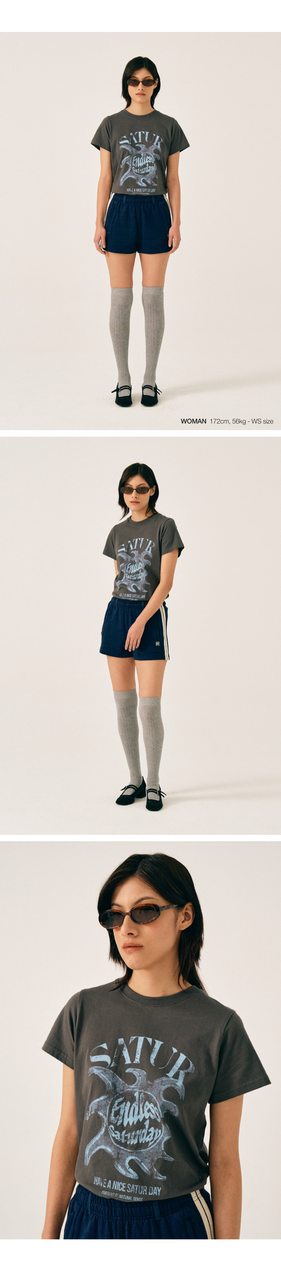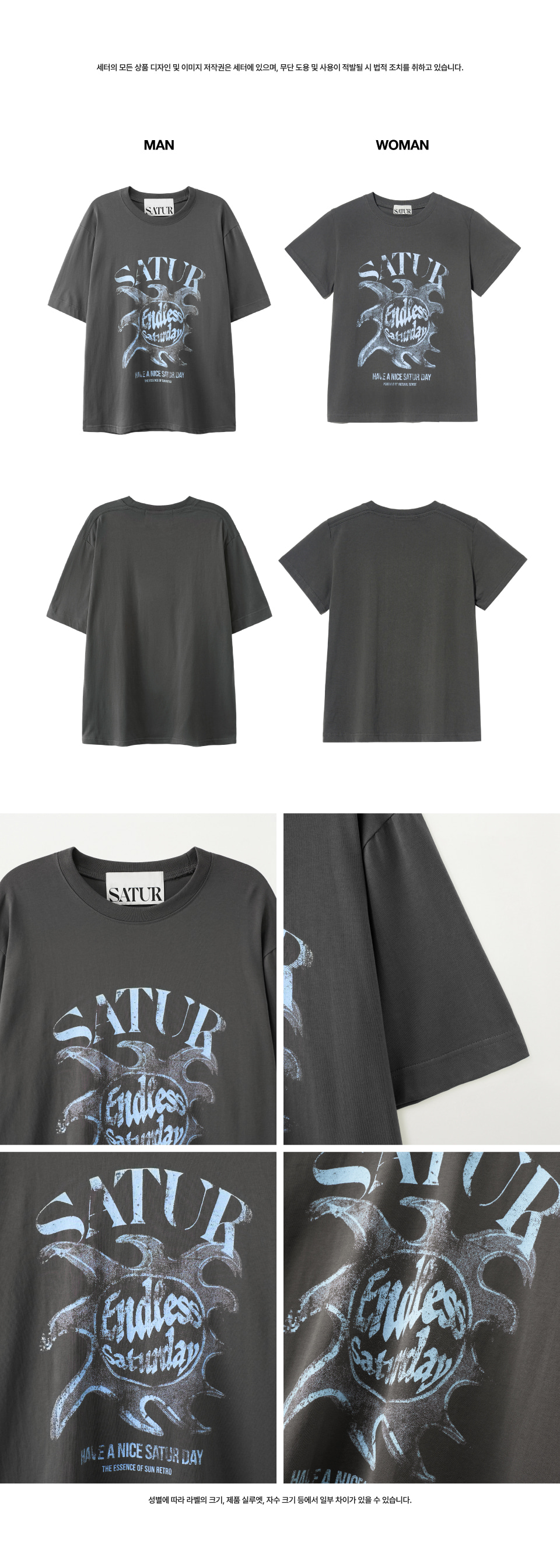 SATUR Sun Retro Graphic T-Shirt Charcoal Blue