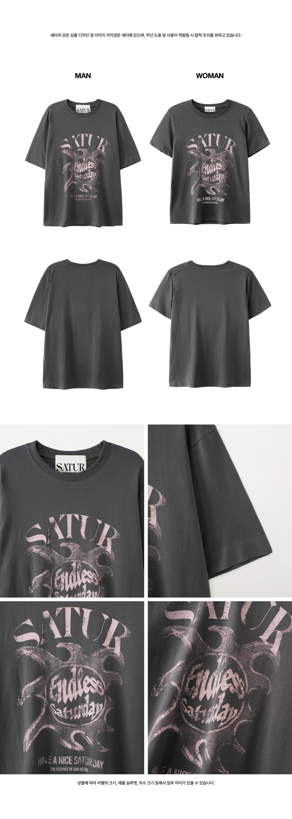 세터 우먼 썬 레트로 그래픽 반팔 티셔츠 차콜 핑크