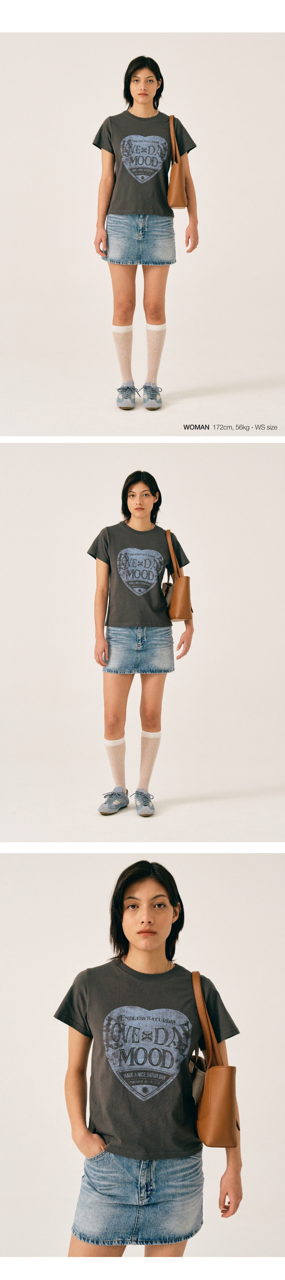 SATUR W Saturday Retro Mood Graphic T-Shirt Charcoal Blue