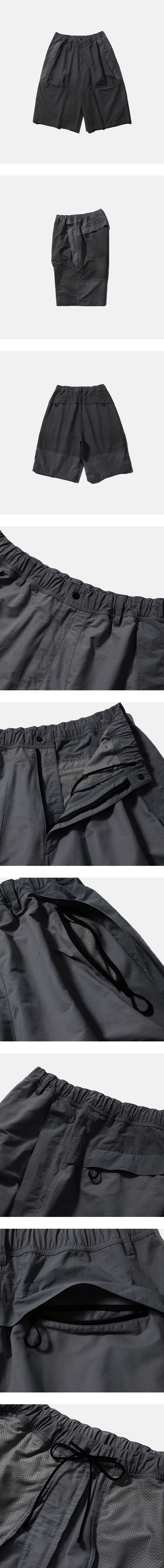 와이드 한 실루엣이 돋보이는 반바지 · 와이드 한 오버사이즈 실루엣. · 고밀도의 면/나일론 혼방 원단 사용. · 덮개가 있는 지퍼 여밈의 사이드 주머니와 뒷 주머니. · 지퍼 플라이 사양. · 신축성 있는 내장형 이밴드에 조임용 스트링이 달린 허리 사양. 모니터 사양에 따라 상품의 색상이 실제 상품과 다소 차이가 날 수 있습니다.