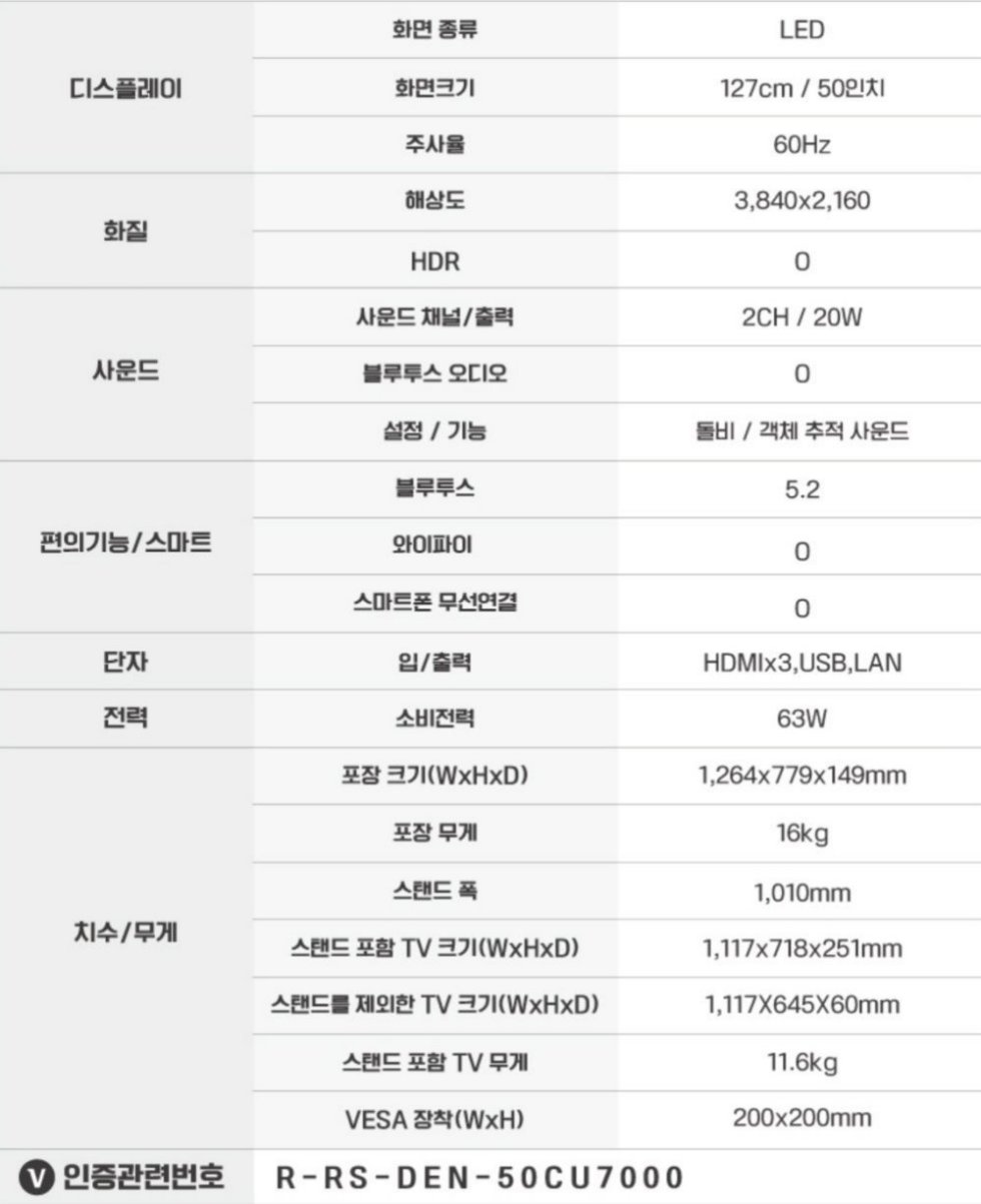 ![[S등급] 리퍼비시 삼성 50인치 최신형 UHD 4K 스마트TV 50CU7000 벽걸이형 방문설치([S등급] Refurbished Samsung 50inch Latest UHD 4K Smart TV (50CU7000) – Wall-Mount Type, In-Home Installation Included) - 1](https://kream-phinf.pstatic.net/MjAyNjA0MTBfMTQ1/MDAxNzc1ODAwMDA0MjE5.pgcdx-r-WG_XrOrYtMZN_v7_x4y5l5Zqmvqd6tE5ZRsg.QJQbnLvYHXUDDAUsPlkCim-hXcgoBr13aZBO5a3x7xsg.PNG/p_b6bbb29889c74c589033a622a1f15c2e.png)
