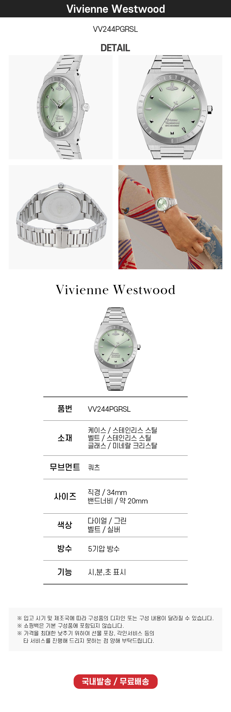 [17% 쿠폰] 비비안 웨스트우드 차터하우스 34mm 그린 실버