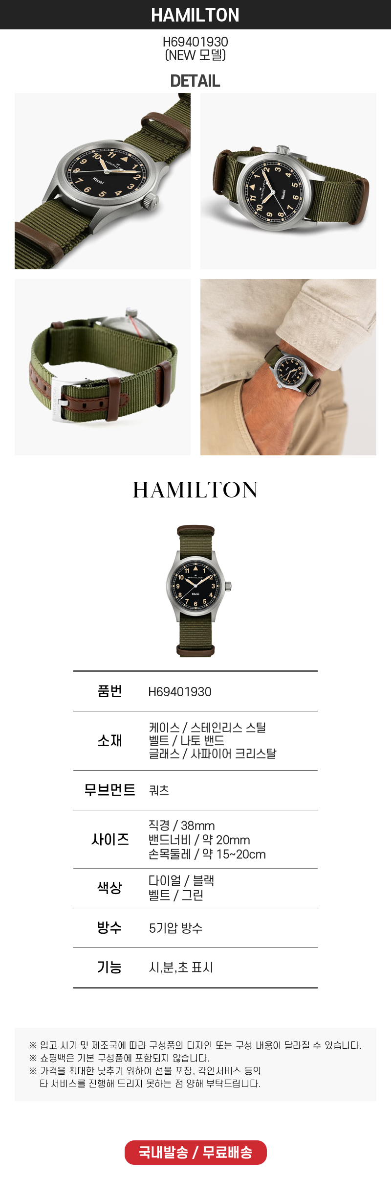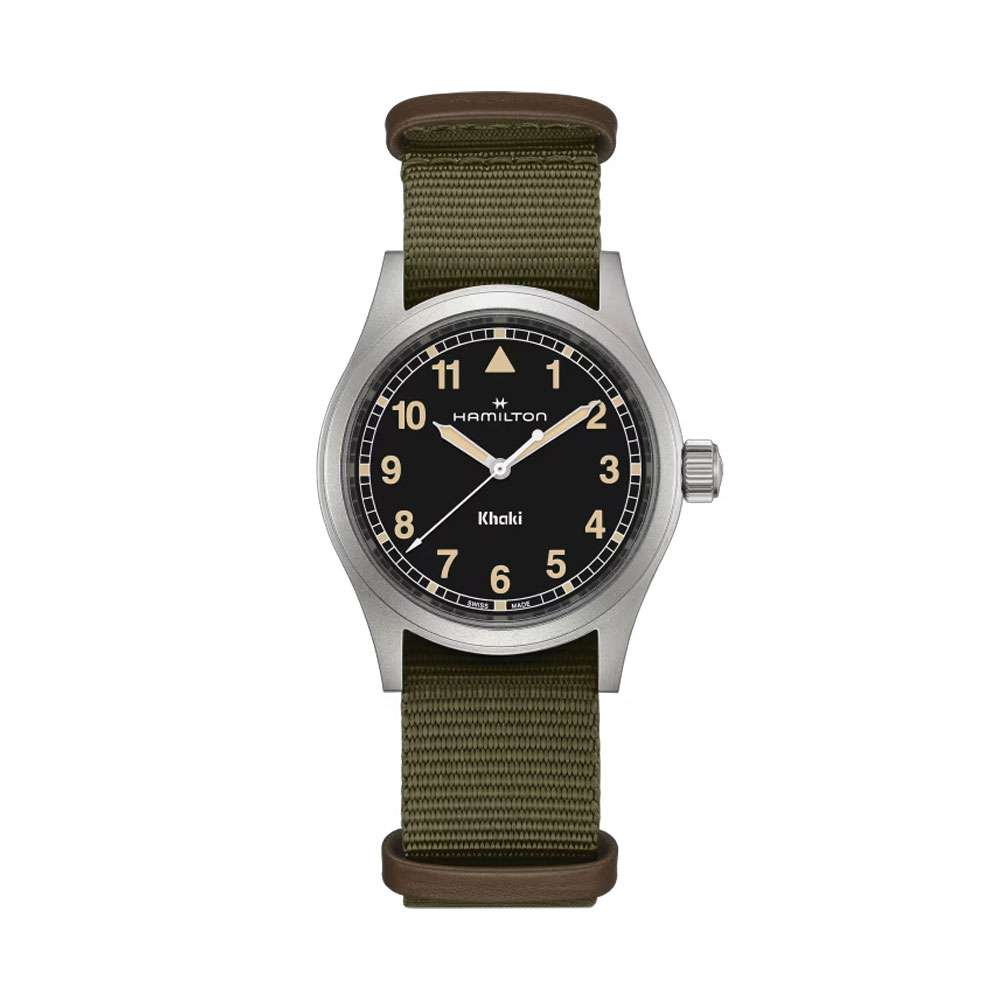 [17% 쿠폰] 해밀턴 카키 필드 쿼츠 38mm 나토 스트랩 블랙 그린