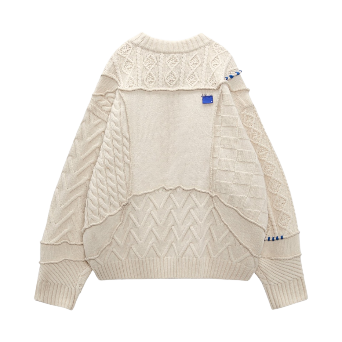Zara x Ader Error Patchwork Oversize Knit Sweater Cream