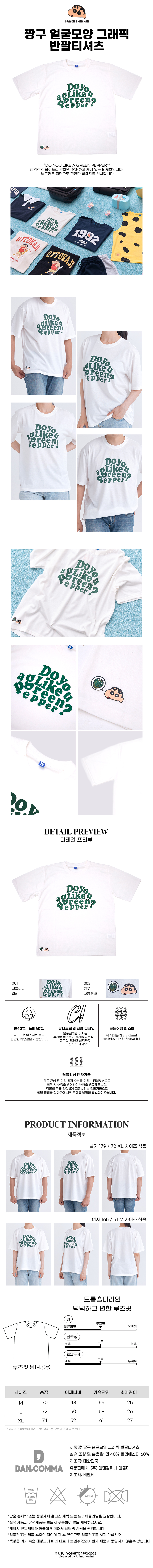 댄꼼마 X 짱구 얼굴모양 그래픽 반팔티셔츠
