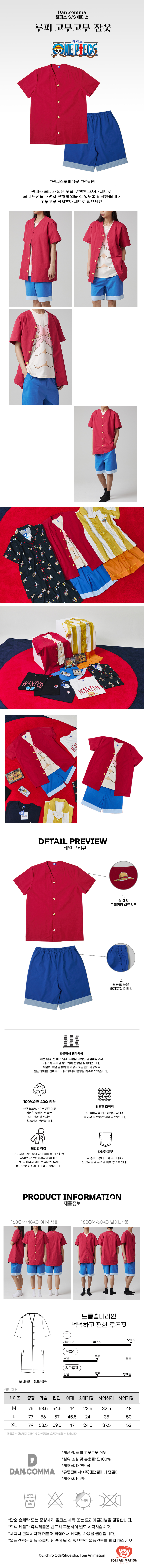 댄꼼마 x 원피스 루피 고무고무 반팔 잠옷