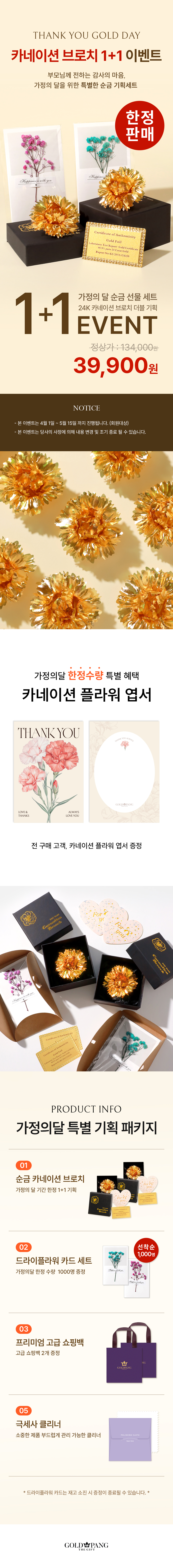 골드팡 가정의 달 1+1 99.9 24k 순금 카네이션 브로치 선물세트
