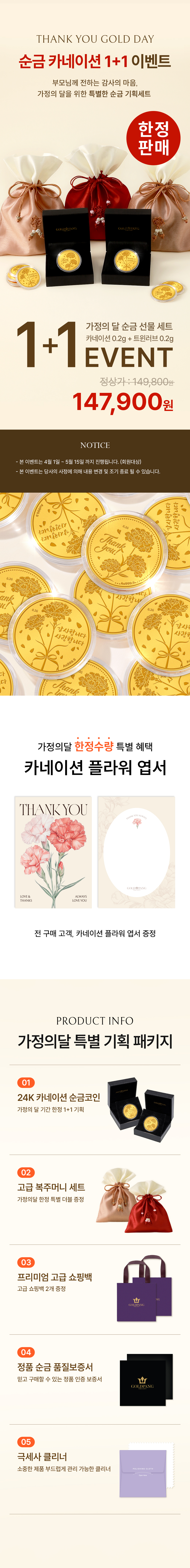 GOLDPANG May Special 1+1 24k Gold Carnation 0.2g 2 Types Set + Special Lucky Gift Package