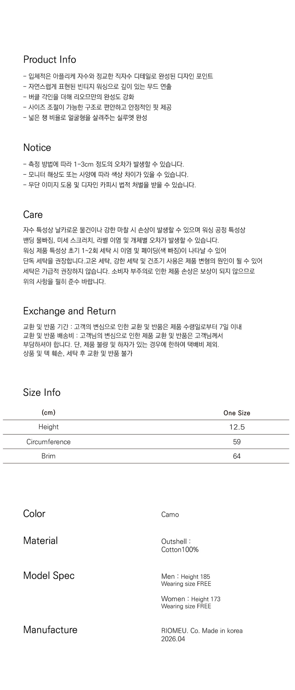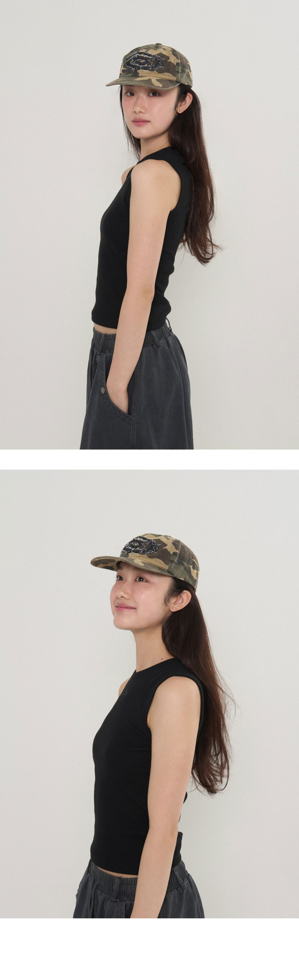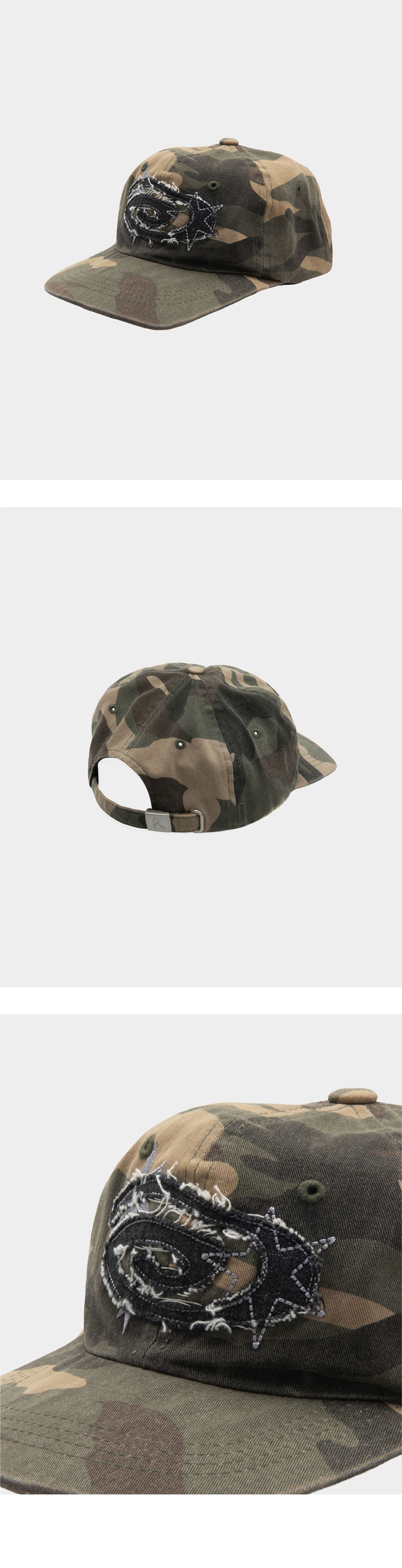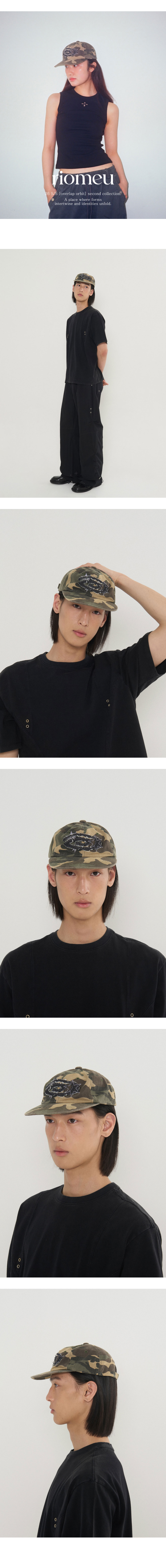 리오므 데님 아플리케 워시드 볼캡 카모