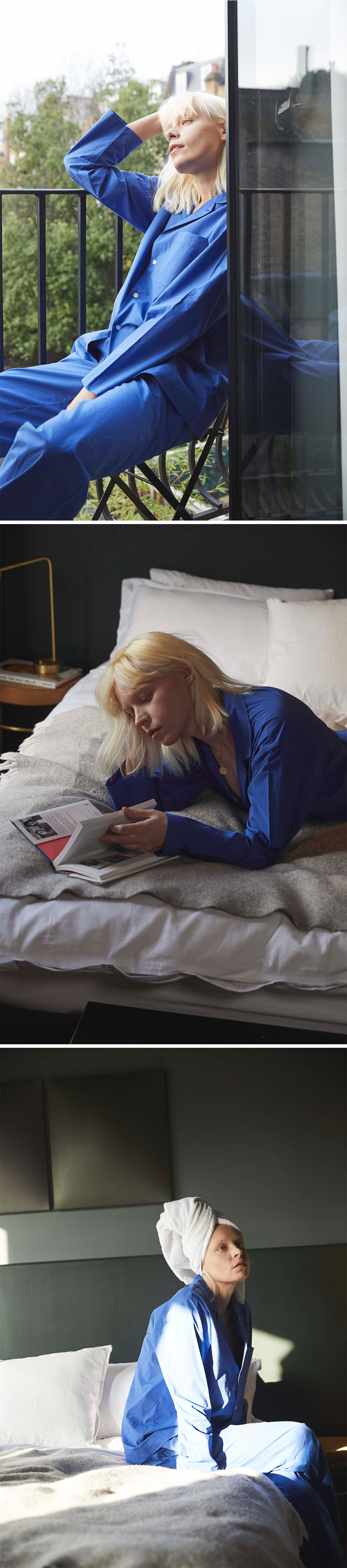 퍼즈플리즈 100% 코튼 파자마 포 유니섹스 (블루)