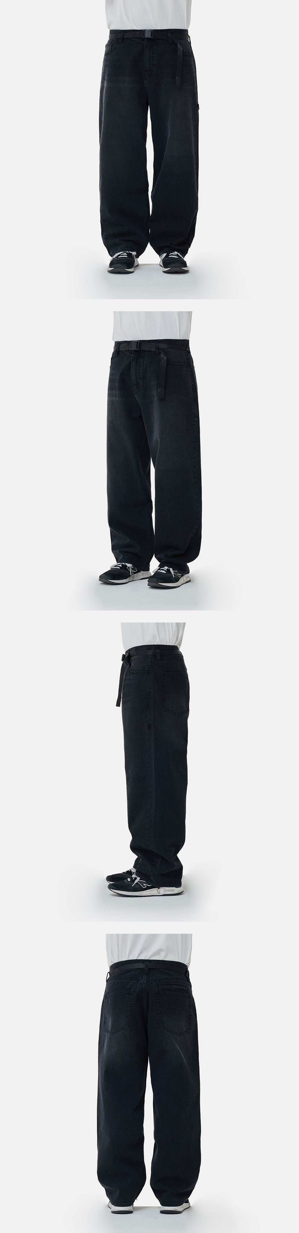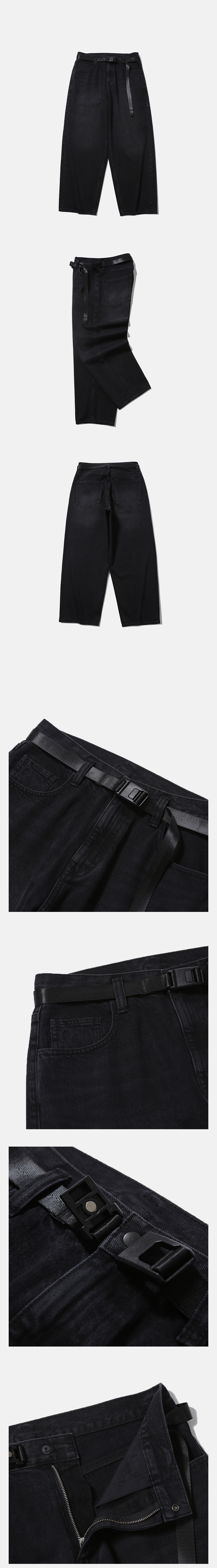 [더블적립][SS26] 모이프 와이드 6P 벨트 데님 팬츠 린스드 블랙