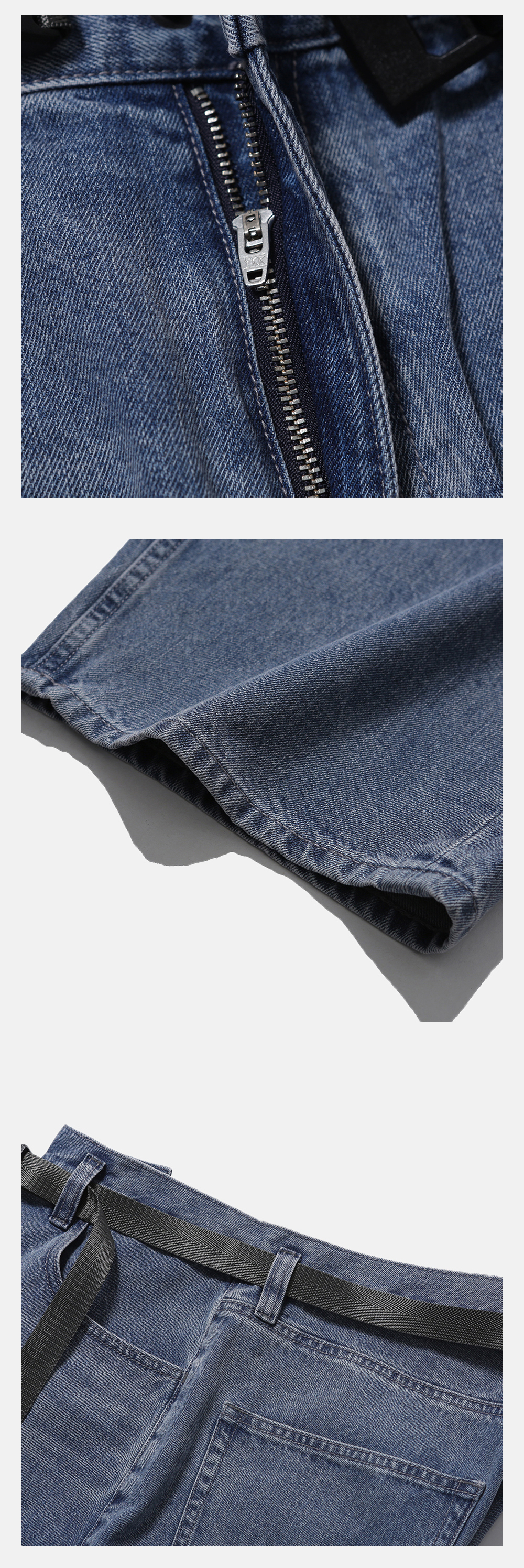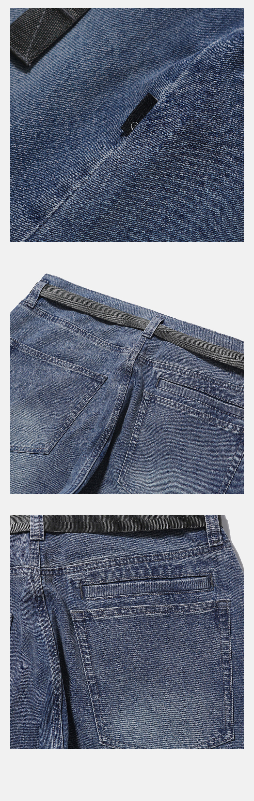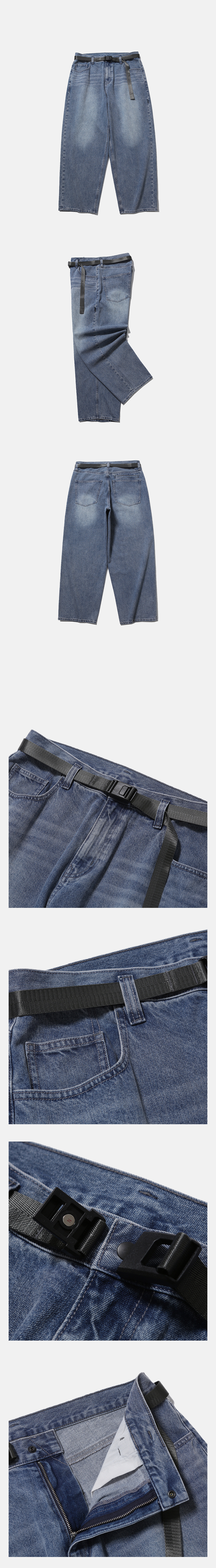 클래식한 데님 팬츠의 디테일을 담은 아이템 · 와이드 한 오버사이즈 실루엣. · 11.5온즈의 데님 원단 사용. · 자석이 부착된 버클을 사용한 탈부착이 가능한 벨트. · 클래식한 데님 팬츠 디자인. · 지퍼 플라이 사양. · 후면부 패치 포켓과 웰트 포켓. · 사이드 심 부분 모이프 심볼 포인트 라벨 부착. *데님 조직의 특성상 아랫부분으로 갈수록 원단이 자연스럽게 뒤틀리는 현상이 있을 수 있습니다. *깔끔한 실루엣을 유지하기 위해, 최초 구매시 후면 웰트 포켓 입구는 봉제되어 있습니다. 사용을 원하실 경우, 입구 부분 스티치를 제거한 뒤 사용해 주시기 바랍니다.