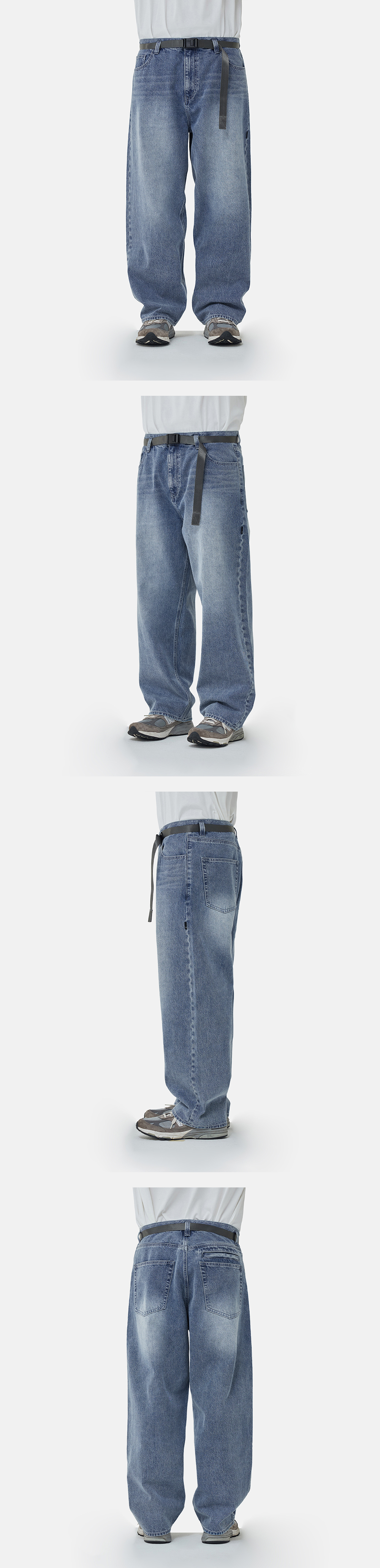 [더블적립][SS26] 모이프 와이드 6P 벨트 데님 팬츠 워시드 인디고