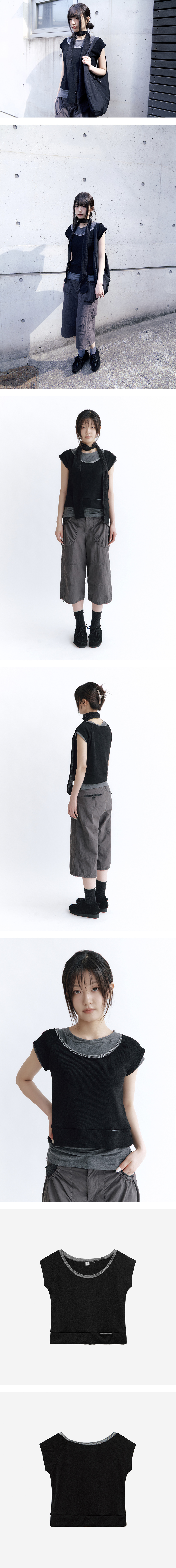 women peek pocket tee - 다양한 이너와 함께 레이어링 매치하는 슬릿 포켓 티셔츠 - 전면 스트라이프 배색 적용 - 단품 및 레이어드 활용이 용이한 디자인 - 로우컷(raw-cut) 마감 - 모델은 함께 발매 된 muted - t shirt 와 레이어링 착용했습니다. *모델 1: 169cm / 마른 체형, 0 사이즈 착용 *모델 2: 169cm / 마른 체형, 0 사이즈 착용