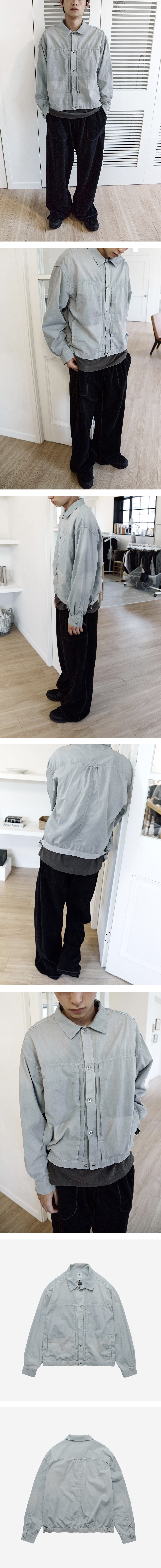 light denim trucker - 늦봄부터 초여름까지 활용 가능한 가벼운 데님 트러커 자켓 - 부분적인 페이딩을 통한 빈티지하고 내추럴한 무드 - 사이드 어드저스터를 통한 실루엣 조절 가능 - 후면 곡선 요크와 셔링 디테일 - 전면 워싱 대비를 활용한 페이크 포켓 및 보로 스티치 디테일 - 후면 요크부터 밑단까지 이어지는 절개 라인 디테일 - 주머니 안감 스트라이프 패브릭 적용