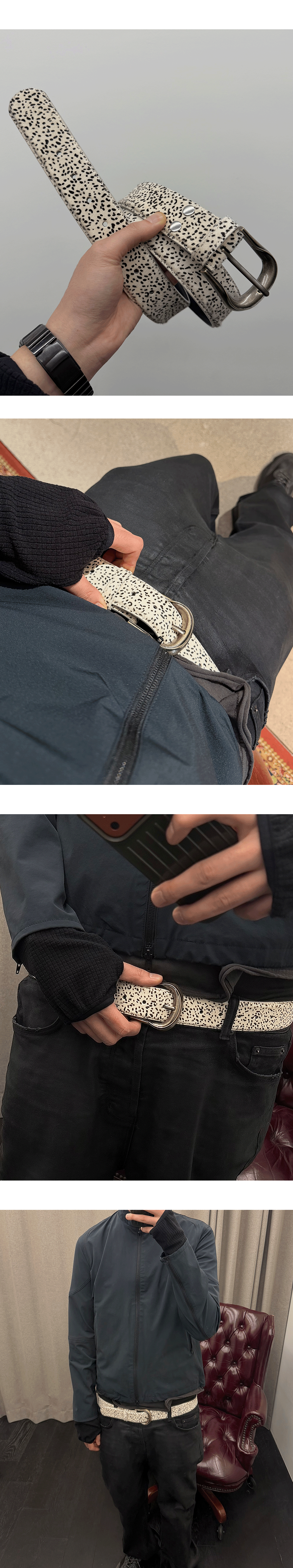 Undermycar Calf Hair Module Belt Strap Speckled Noir Hide