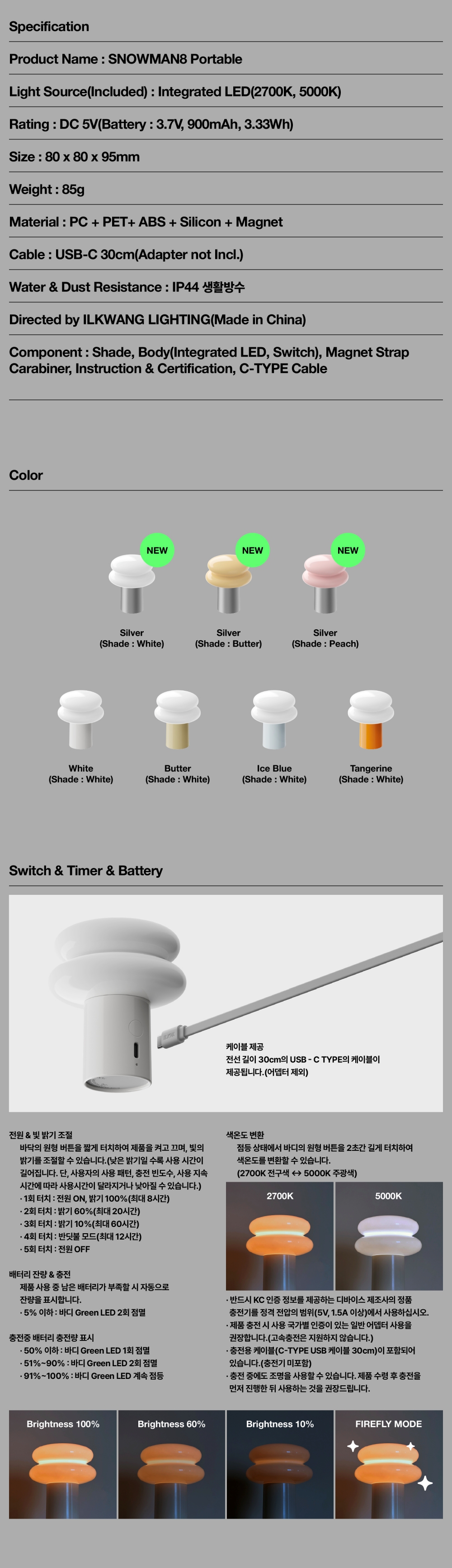 일광전구 스노우맨8 포터블 실버 (쉐이드:피치)