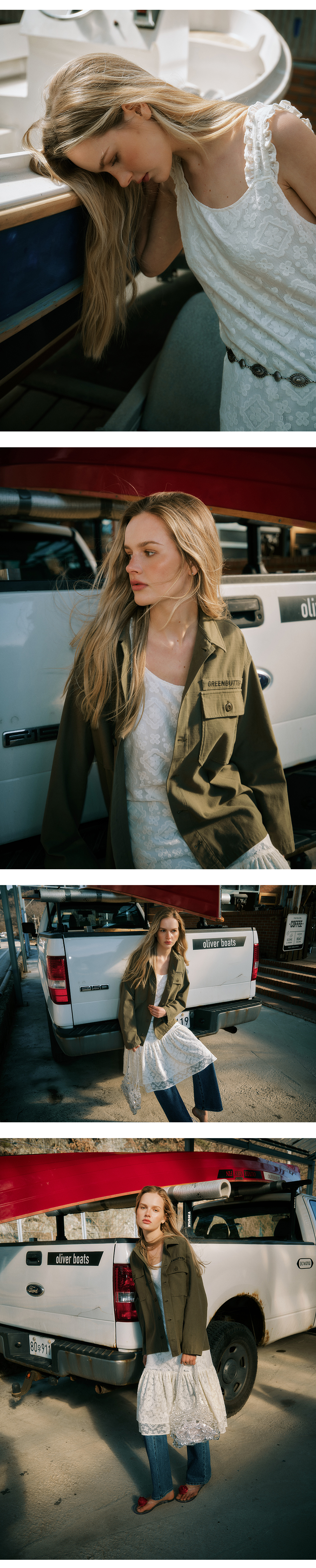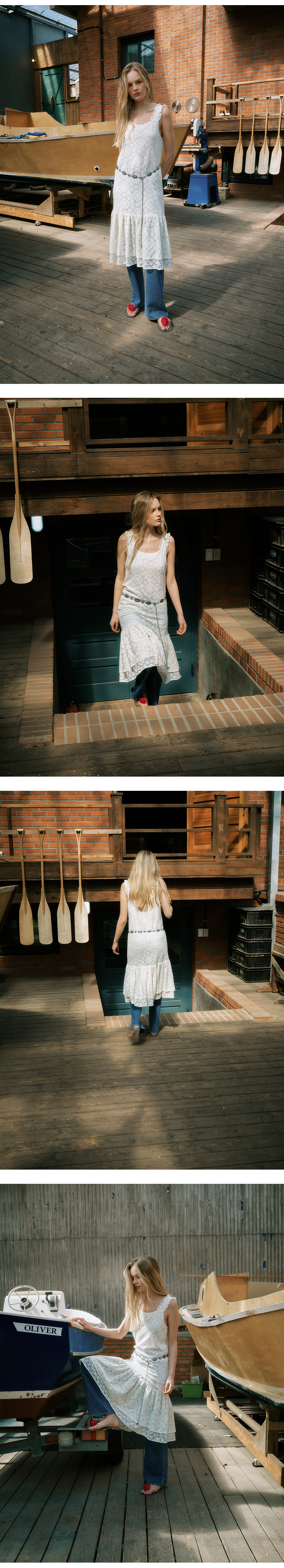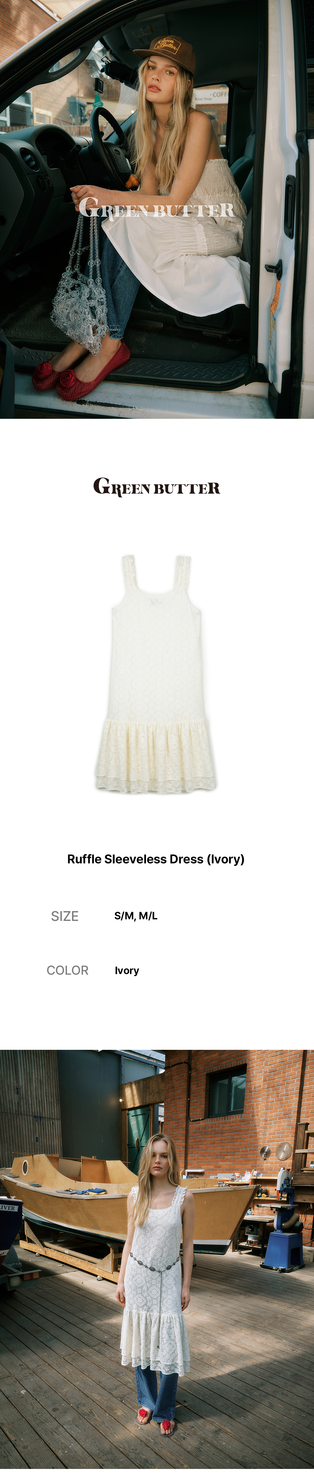 그린버터 러플 슬리브리스 드레스 아이보리