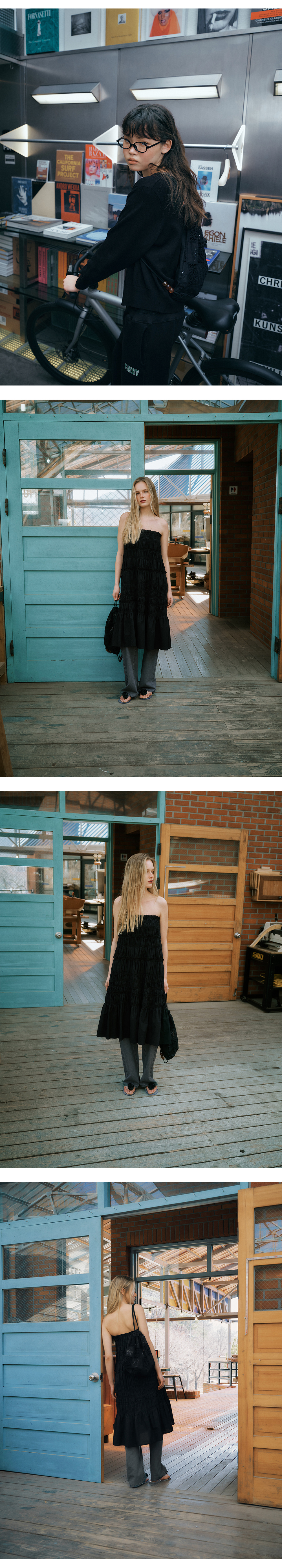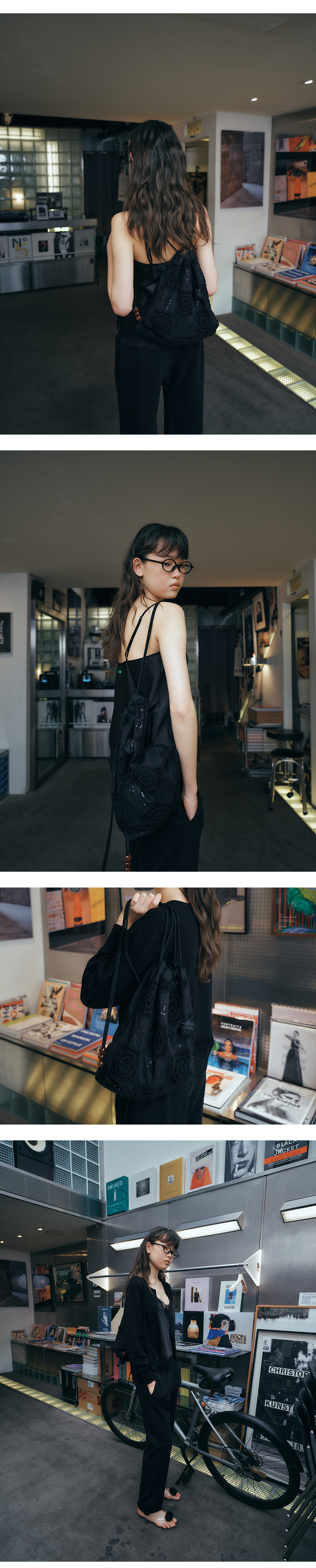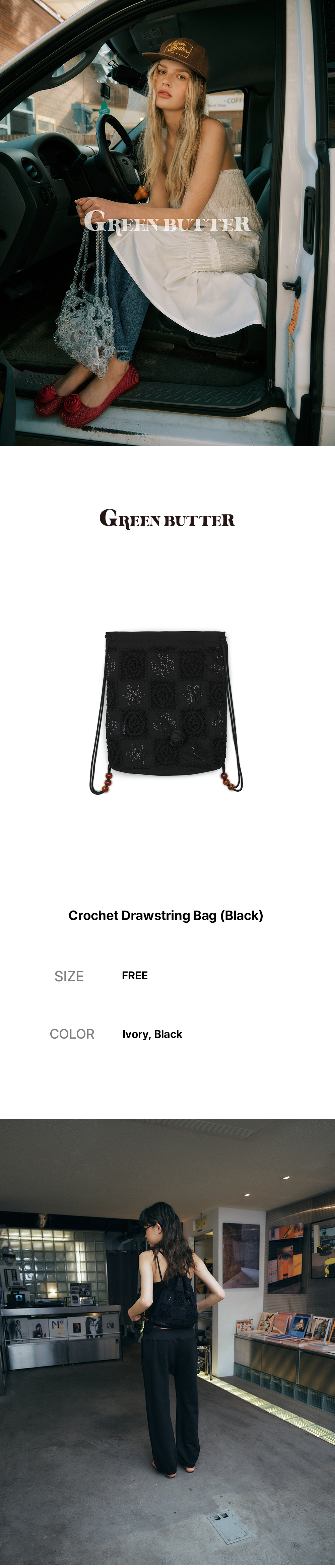 그린버터 크로셰 드로우스트링백 블랙