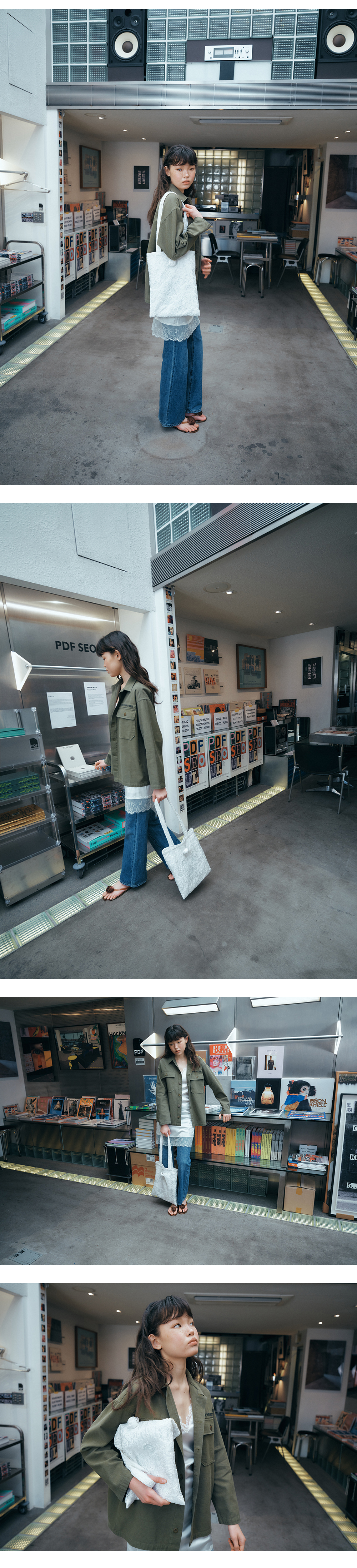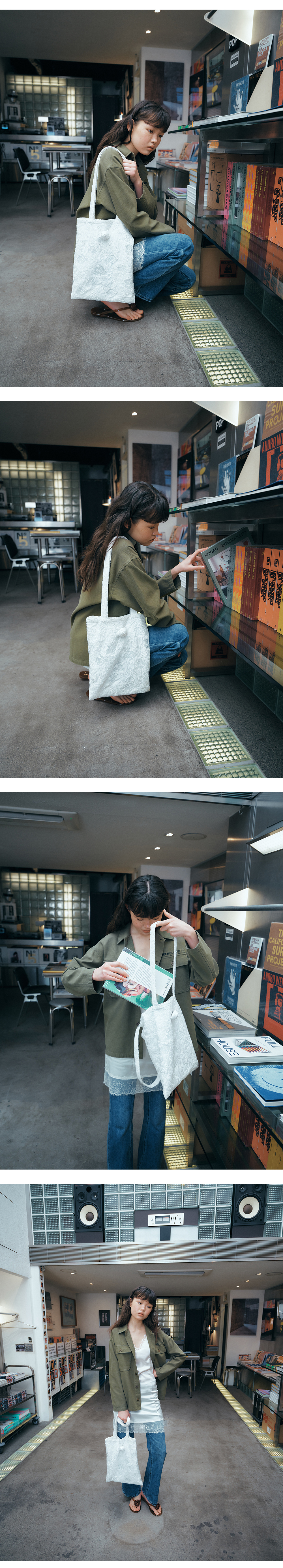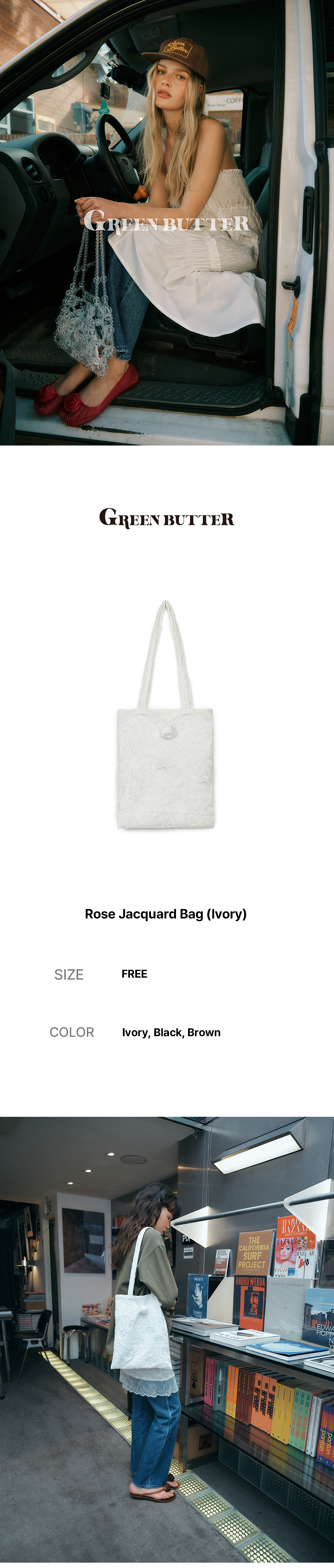그린버터 로즈 자카드 백 아이보리