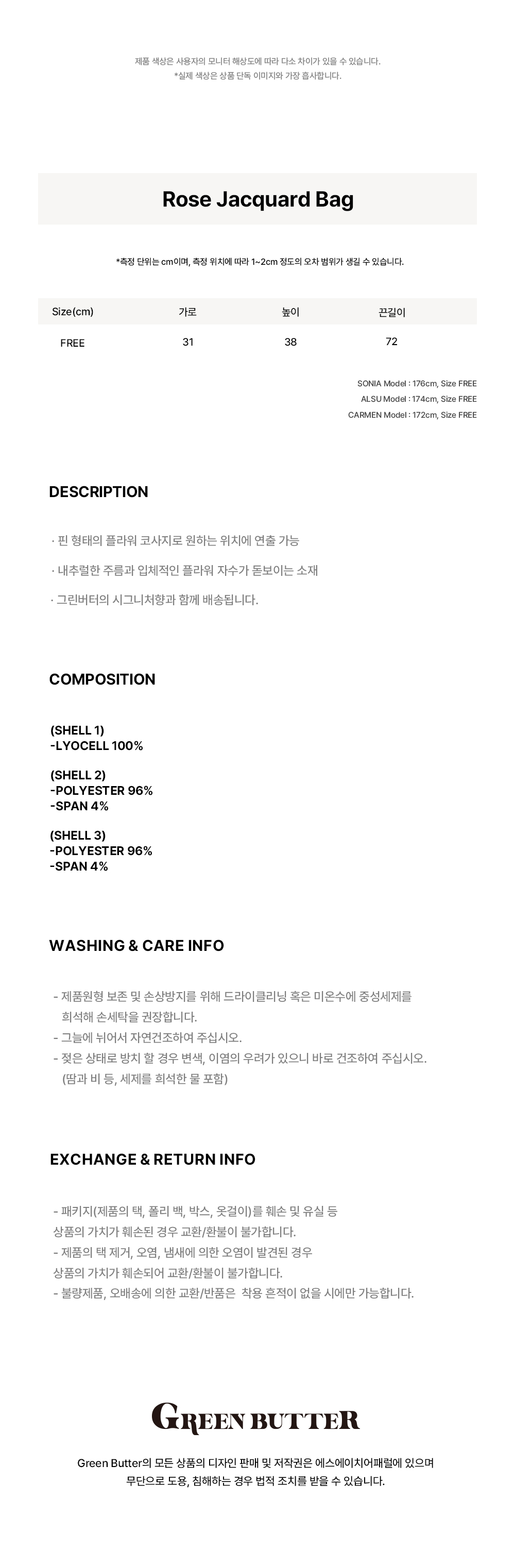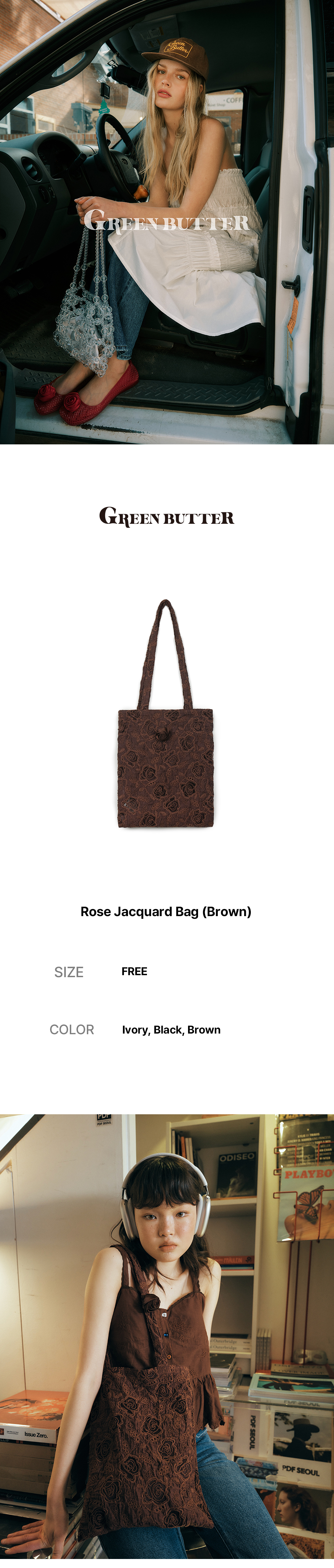 그린버터 로즈 자카드 백 브라운