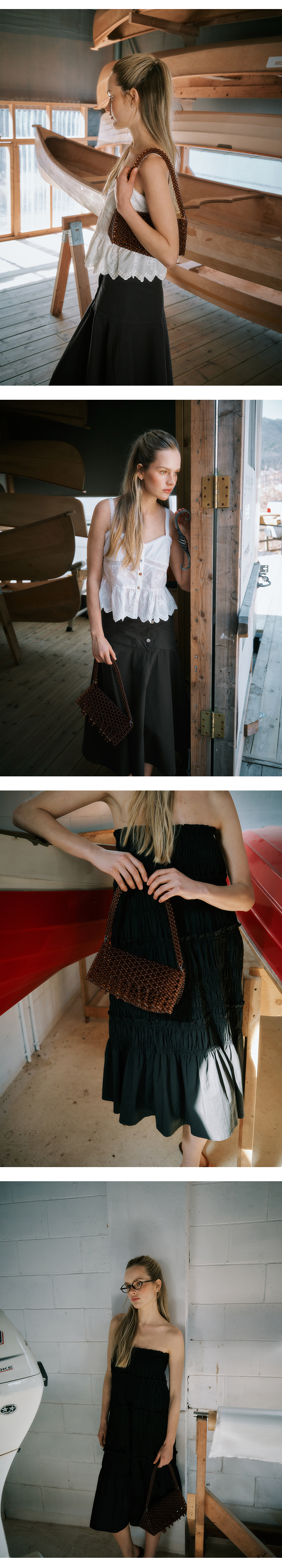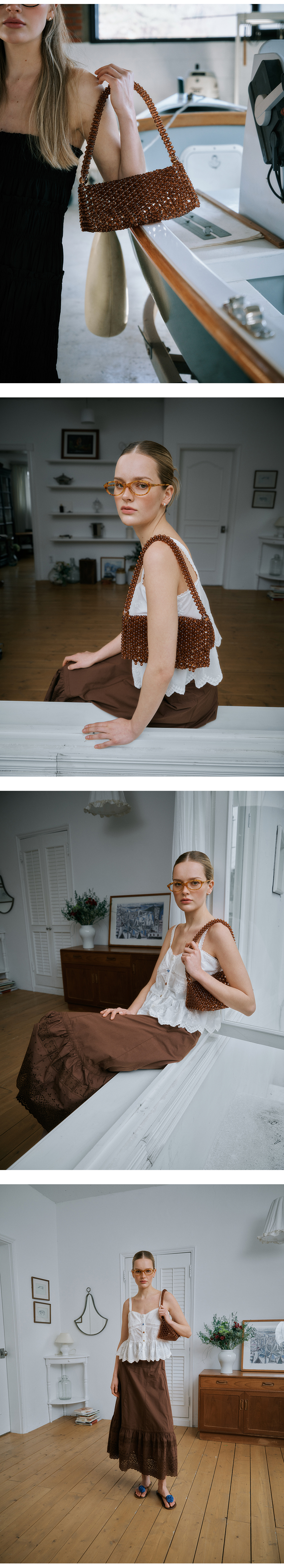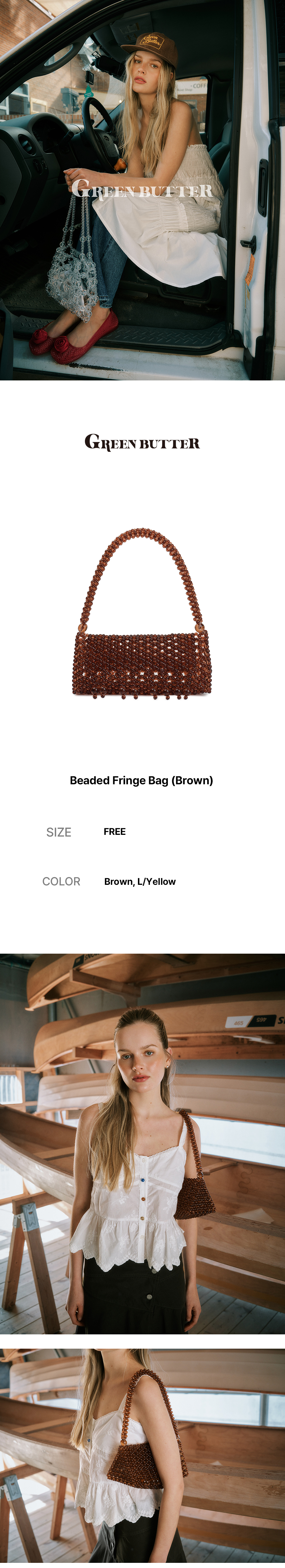 그린버터 비즈 프린지 백 브라운