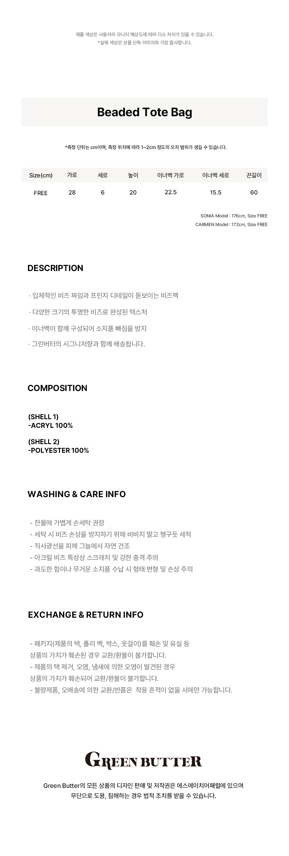 그린버터 비즈 토드백 클리어