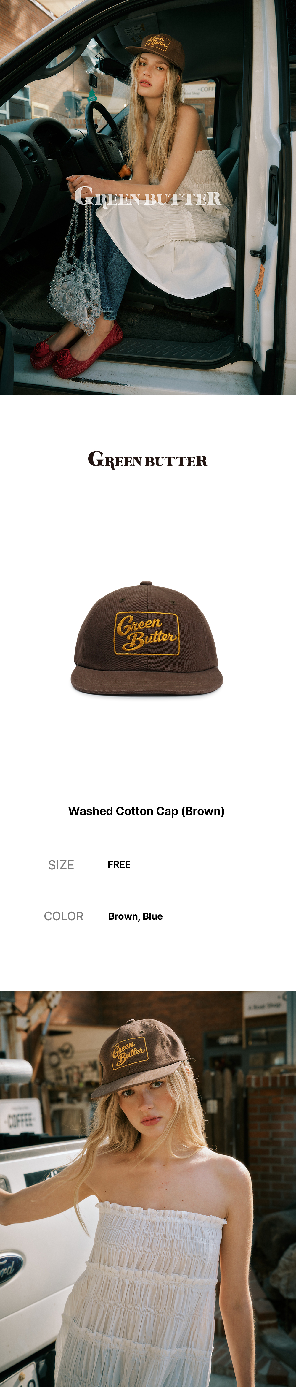 그린버터 워시드 코튼 캡 브라운