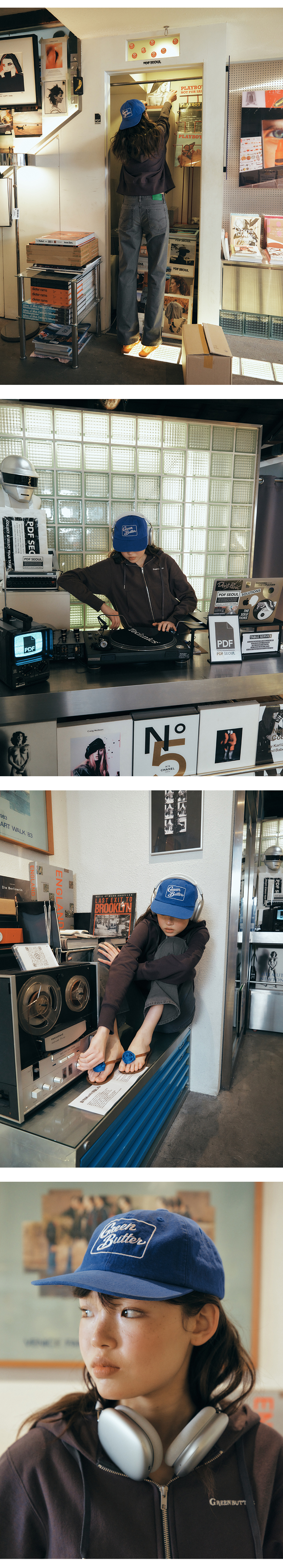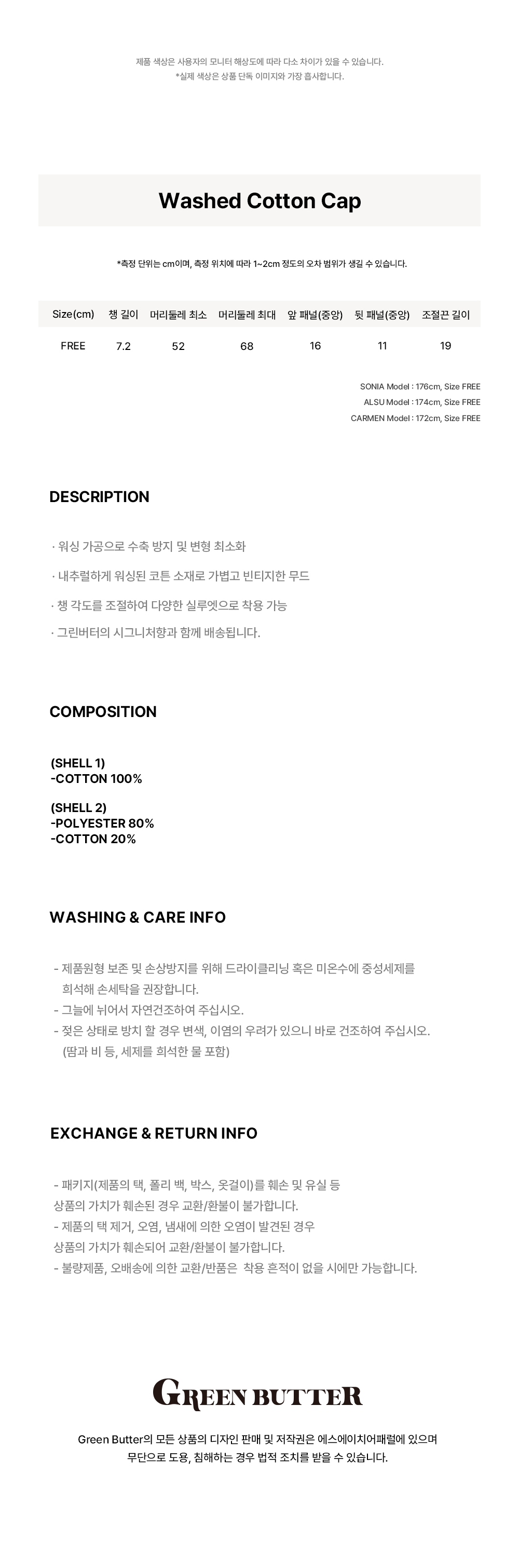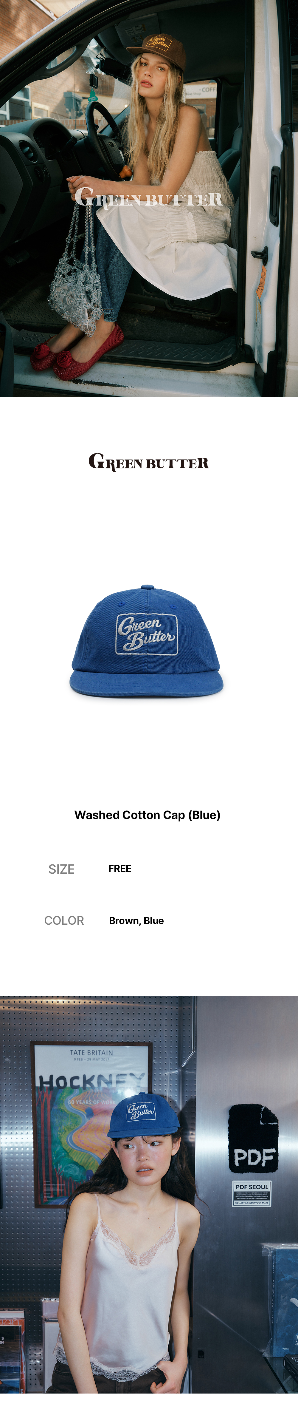 그린버터 워시드 코튼 캡 블루