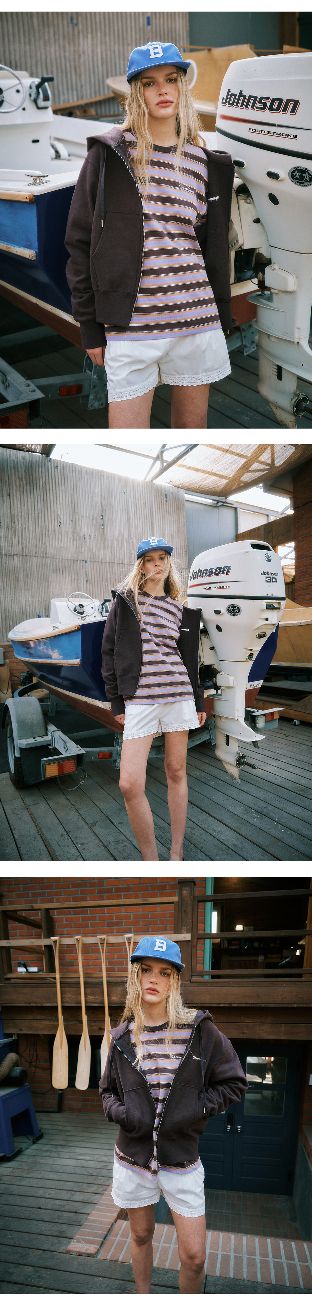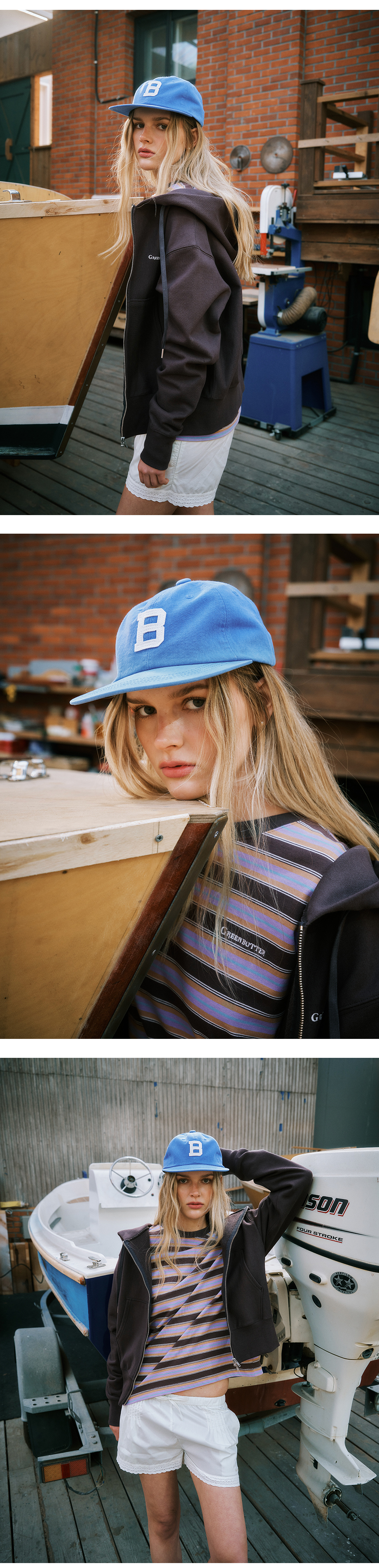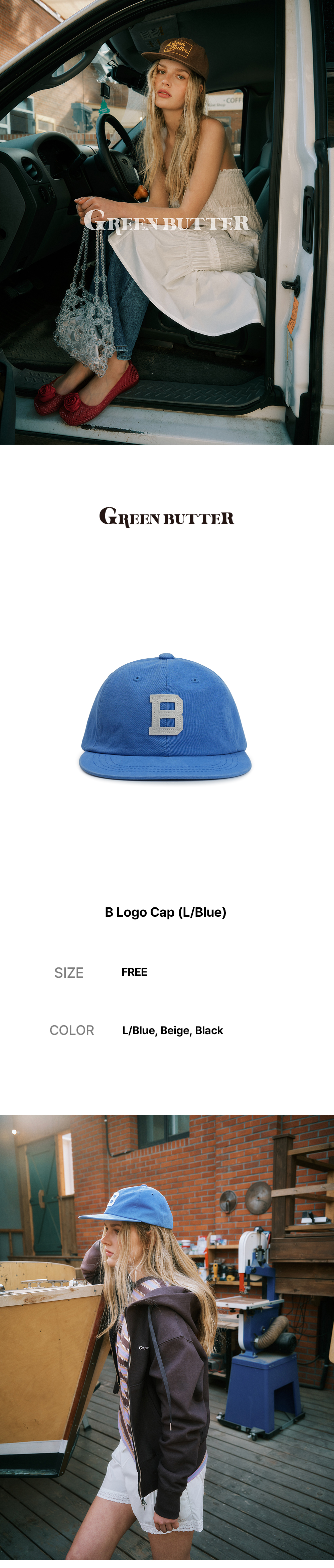 그린버터 비 로고 캡 라이트블루