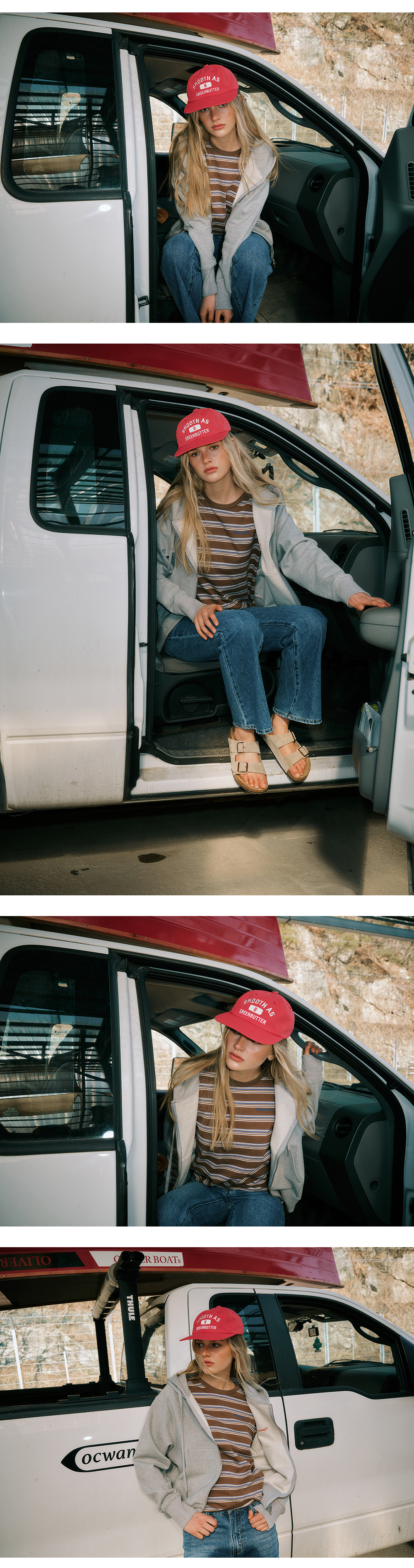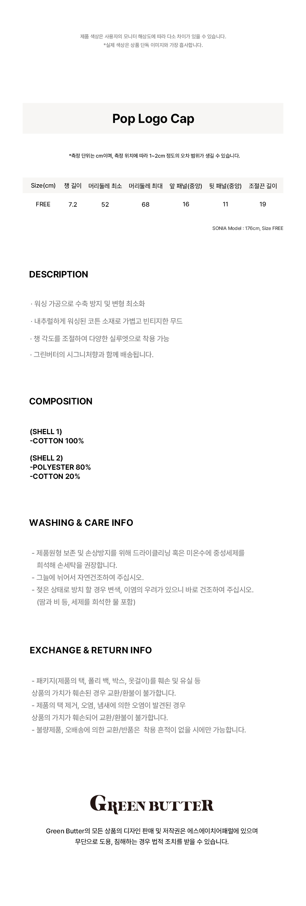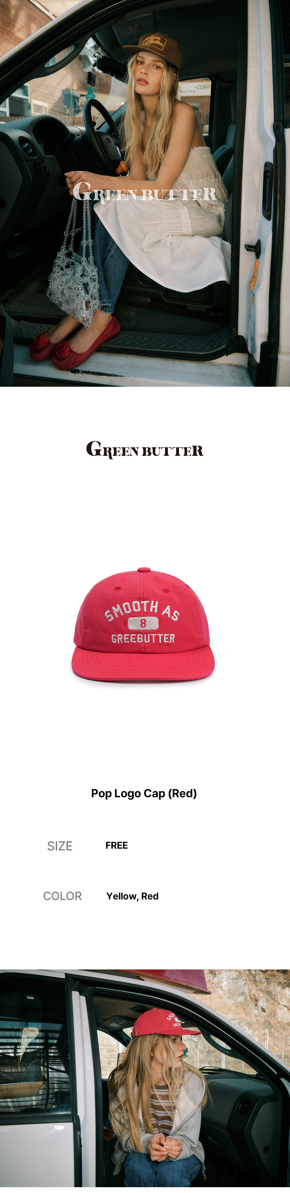 그린버터 팝 로고 캡 레드