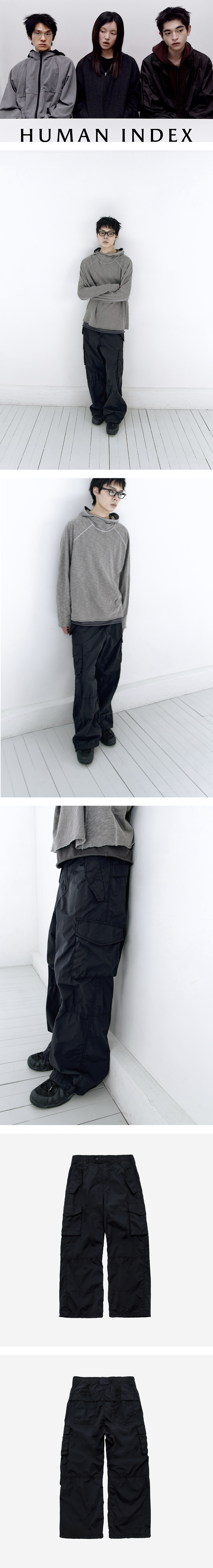 index light CN M65 Pants - m65 팬츠를 변형한, 이지한 카고 트랙 팬츠 - 얇은 소재를 적용해 가벼운 착용감 - 자연스러운 퍼커링 - 신축성 있는 허리 밴딩 - 측면 4개, 후면 2개의 플랩 포켓 - 선그립 스냅버튼 적용 *남성 모델 : 180cm / 마른 체형, 4사이즈 착용