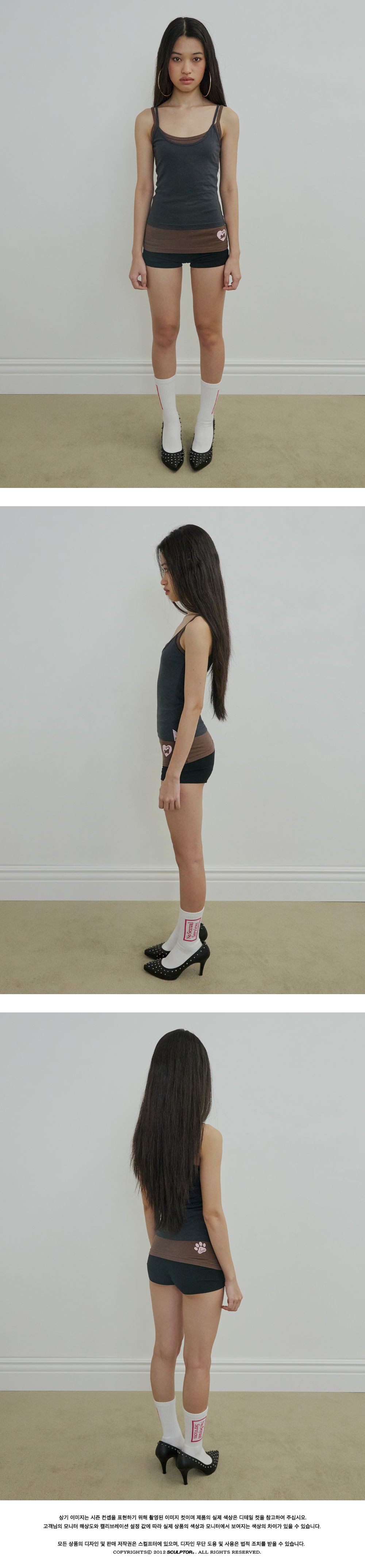 [INFORMATION] COTTON 57% MODAL 38% SPAN 5% MANUFACTURE : SCULPTOR / KOREA XS : Length 32 / Chest 30 / Hem 30 S : Length 33 / Chest 32 / Hem 32 M : Length 34 / Chest 34 / Hem 34 L : Length 35 / Chest 36 / Hem 36 *There may be 1-2cm difference depending on the measurement location and individual. (Unit : cm) Female Model's Height 157 / Bust 28 / Waist 21.5 / Hip 31.5 *Female Model Fitting Size : S