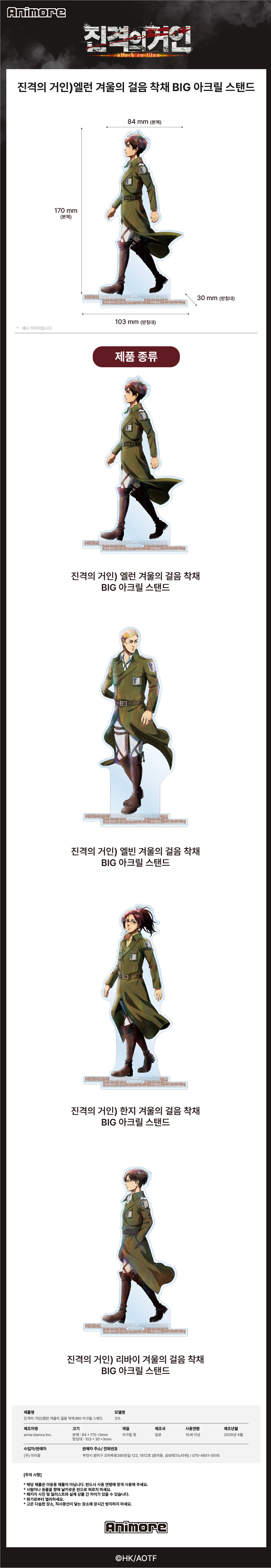 ![[예약배송] 애니모어 진격의 거인 엘런 겨울의 걸음 착채 BIG 아크릴 스탠드([예약배송] Animore Attack on Titan Eren Step Of Winter Coloring Big Acrylic Stand) - 1](https://kream-phinf.pstatic.net/MjAyNjA0MjFfNSAg/MDAxNzc2NzUyMTAxMTY0.hVvl69PLcAleRxIT0gXDCHSzbYIJWfgJDY36tJ53qpQg._C8mfxoevXdToSEWaAF_9PCRX8JwkkMqfaMiWnRN59Ag.PNG/a_8c896a10a37c42b197b0a524daa58cb7.png)