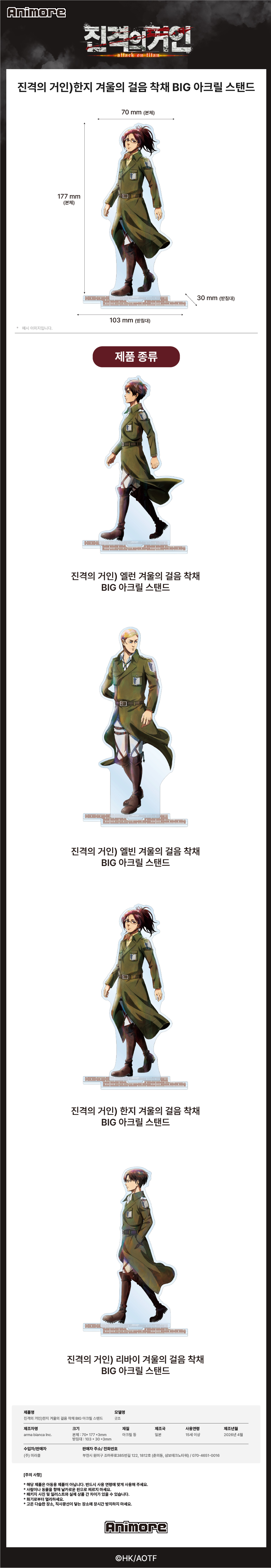 ![[예약배송] 애니모어 진격의 거인 한지 겨울의 걸음 착채 BIG 아크릴 스탠드([예약배송] Animore Attack on Titan Hange Step Of Winter Coloring Big Acrylic Stand) - 1](https://kream-phinf.pstatic.net/MjAyNjA0MjFfMjI4/MDAxNzc2NzUyMjE5MTIx.maCpkRbOCBQslPrZZH3JzJOxAnuf3eskNioEyjCp1eog.dbi0pPBZb2DoYDiLSQw9eH8dtz_Z4D6LZcwdMUSg2FYg.PNG/a_80b3c4b242b64f2c96d686e56f3af718.png)