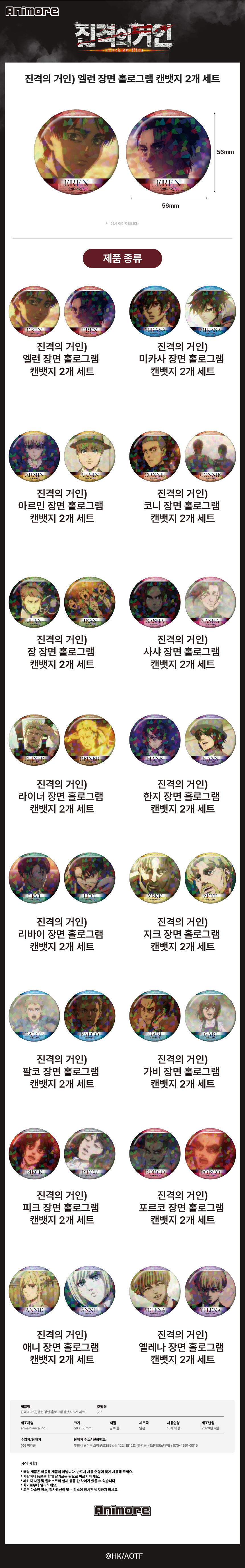 [예약배송] 애니모어 진격의 거인 엘런 장면 홀로그램 캔뱃지 2개 세트
